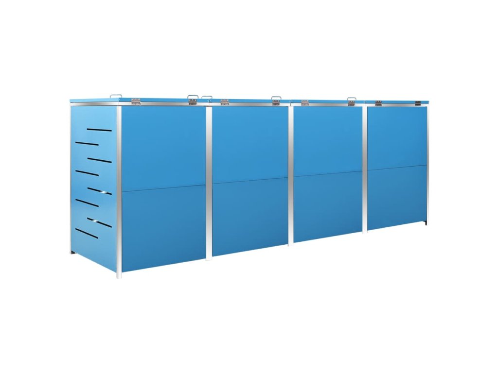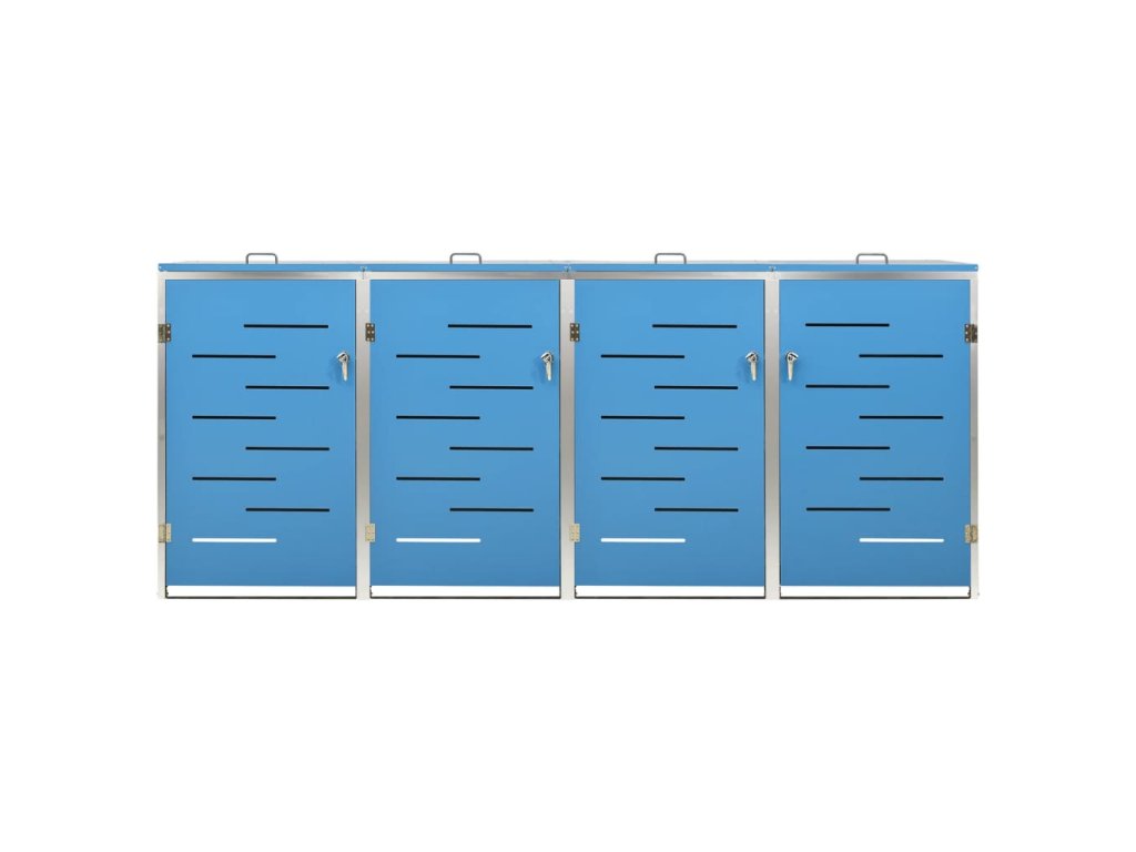 Tento přístřešek na popelnice je vyroben z pozinkovaného ocelového panelu a rámu z nerezové oceli, takže je mimořádně robustní a odolný proti korozi. Dutá konstrukce umožňuje cirkulaci vzduchu a zabraňuje, aby v popelnicích vznikal nepříjemný zápach. Uzamykací systém zároveň zajišťuje bezpečné uložení odpadků. Praktické víko a pružiny navíc usnadňují vkládání a vyjímání popelnic.