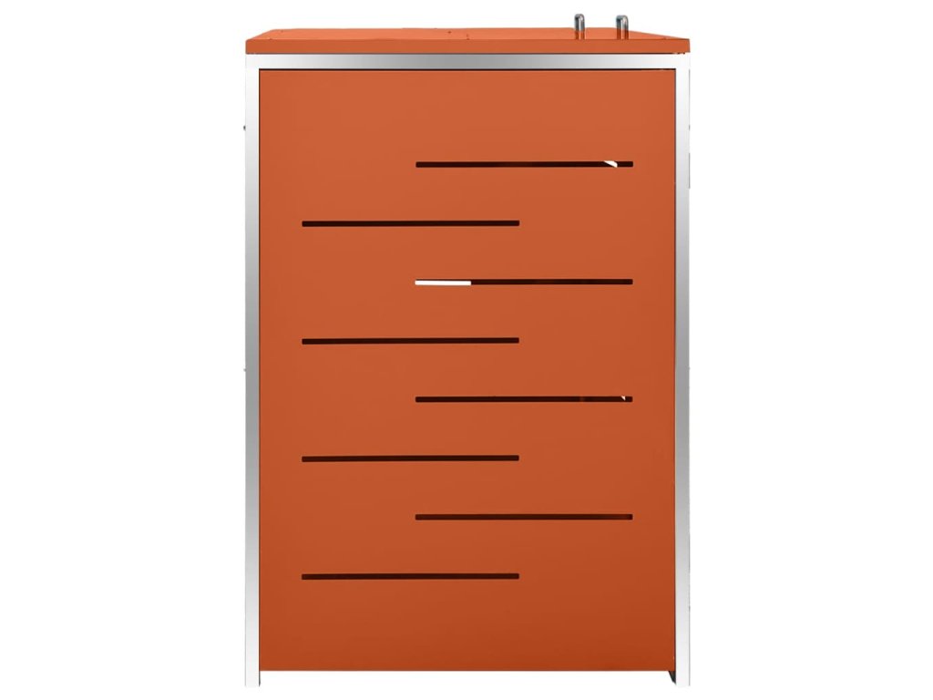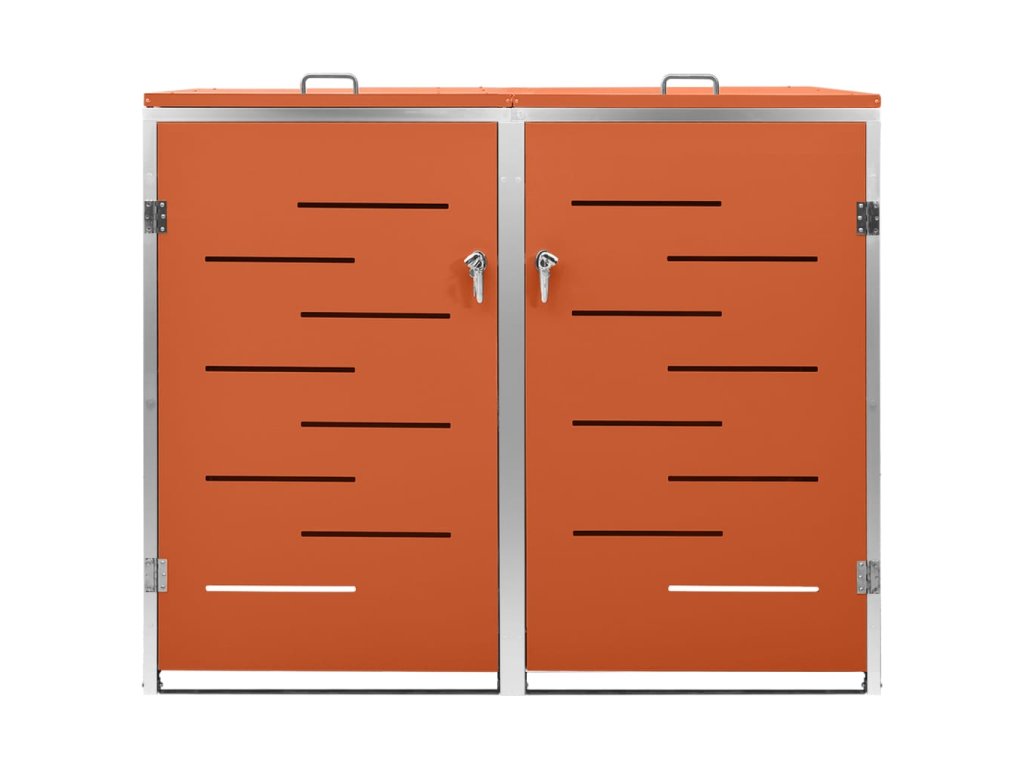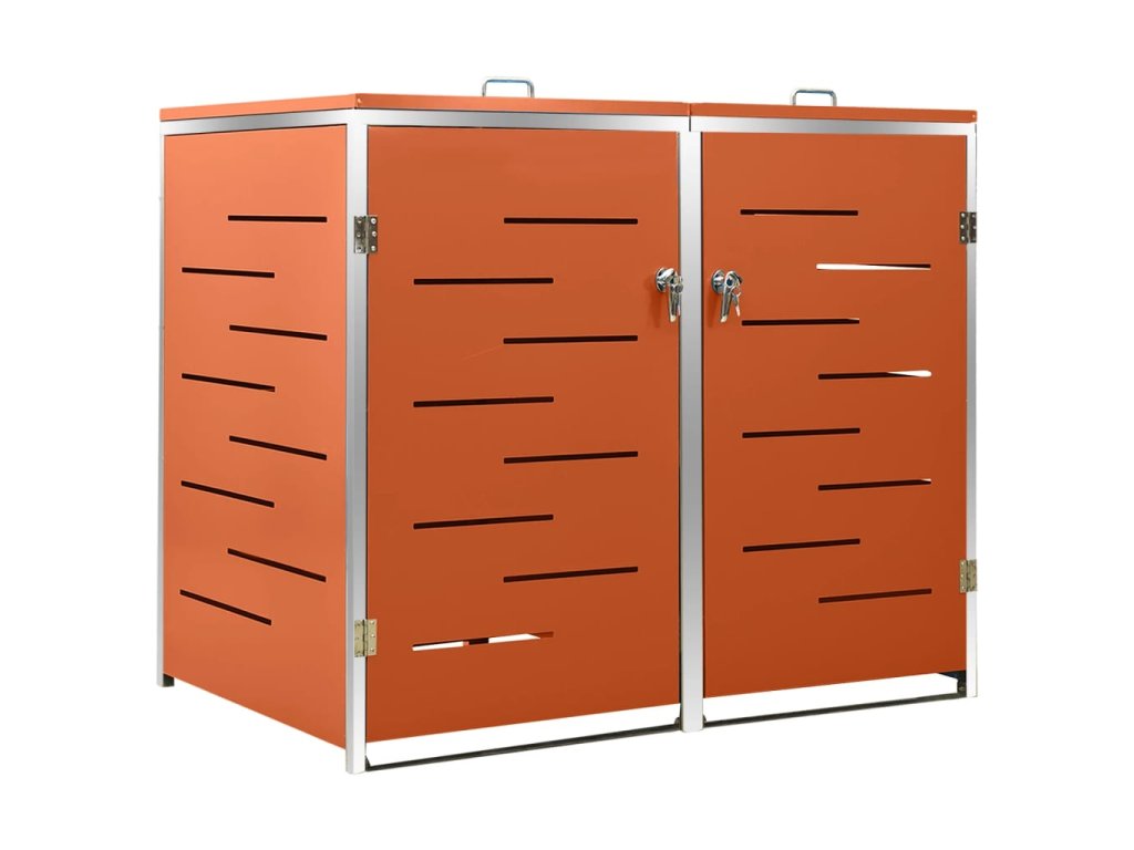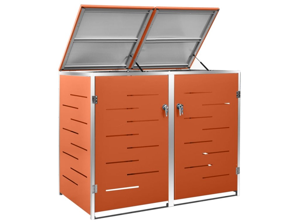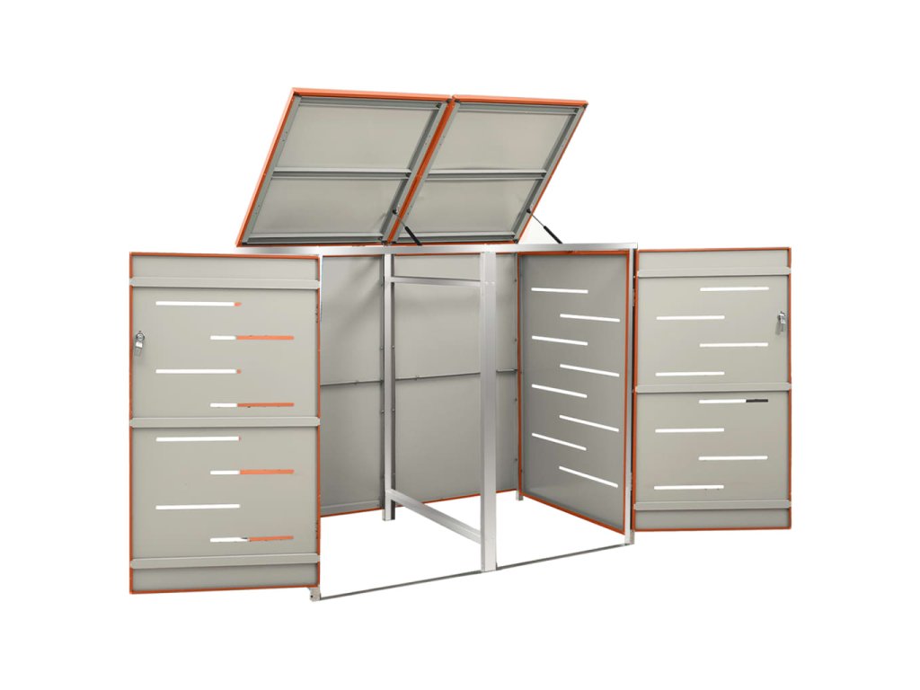 Tento přístřešek na popelnice je vyroben z pozinkovaného ocelového panelu a rámu z nerezové oceli, takže je mimořádně robustní a odolný proti korozi. Dutá konstrukce umožňuje cirkulaci vzduchu a zabraňuje, aby v popelnicích vznikal nepříjemný zápach. Uzamykací systém zároveň zajišťuje bezpečné uložení odpadků. Praktické víko a pružiny navíc usnadňují vkládání a vyjímání popelnic.