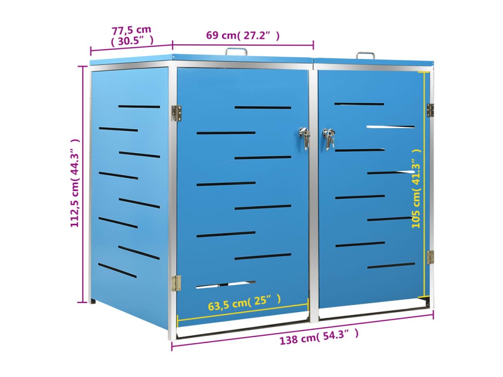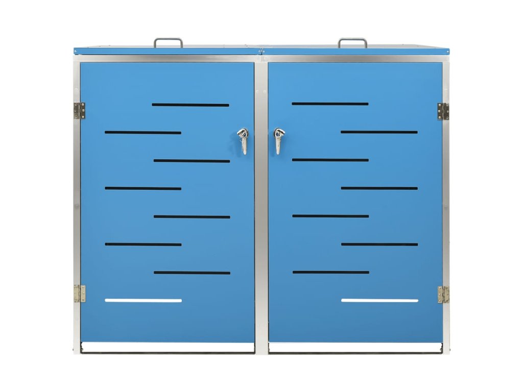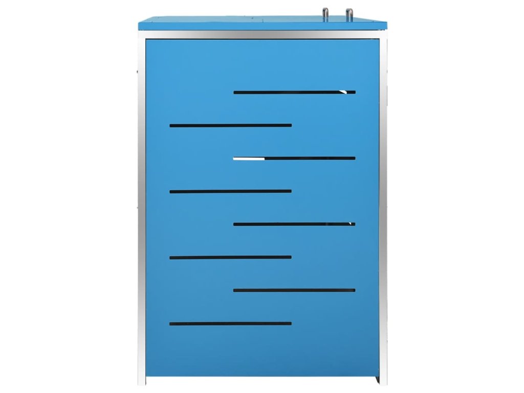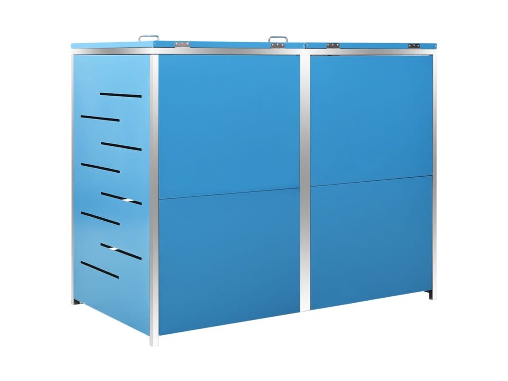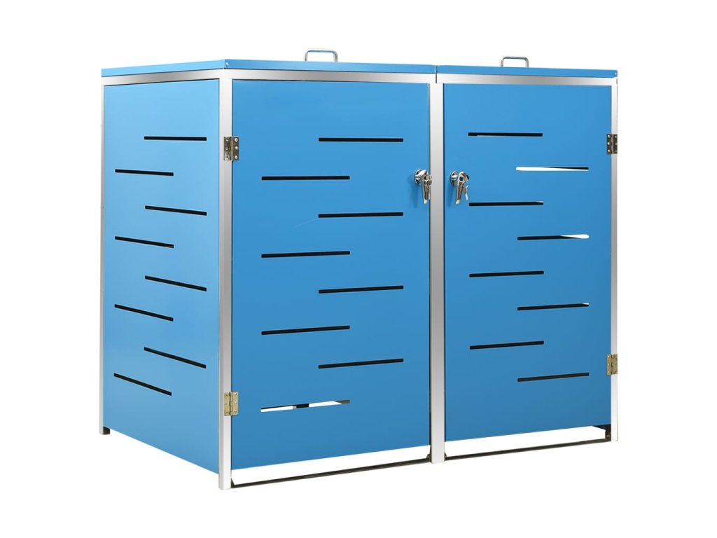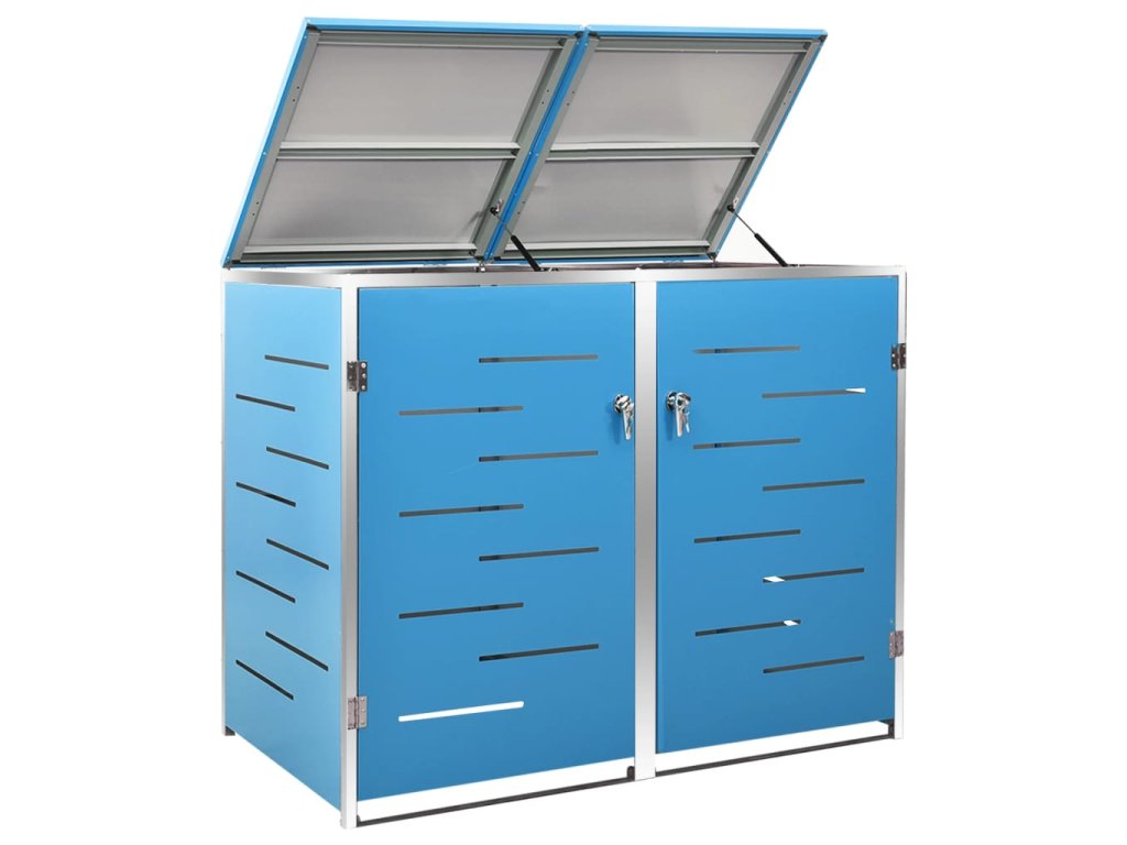 Tento přístřešek na popelnice je vyroben z pozinkovaného ocelového panelu a rámu z nerezové oceli, takže je mimořádně robustní a odolný proti korozi. Dutá konstrukce umožňuje cirkulaci vzduchu a zabraňuje, aby v popelnicích vznikal nepříjemný zápach. Uzamykací systém zároveň zajišťuje bezpečné uložení odpadků. Praktické víko a pružiny navíc usnadňují vkládání a vyjímání popelnic.
