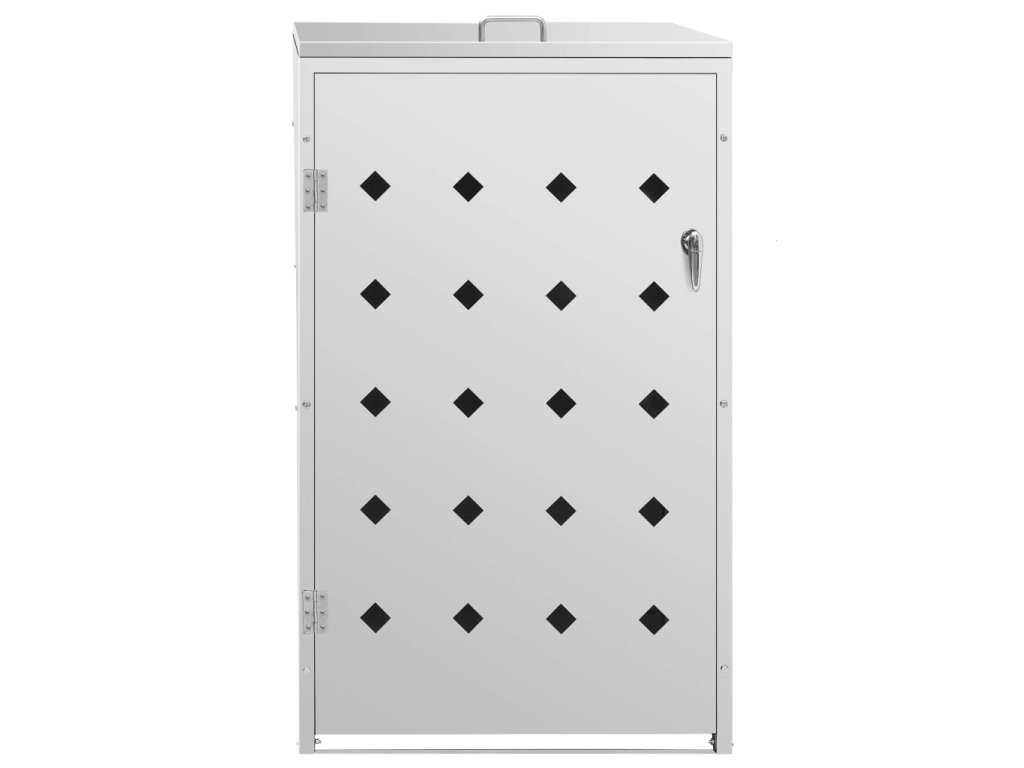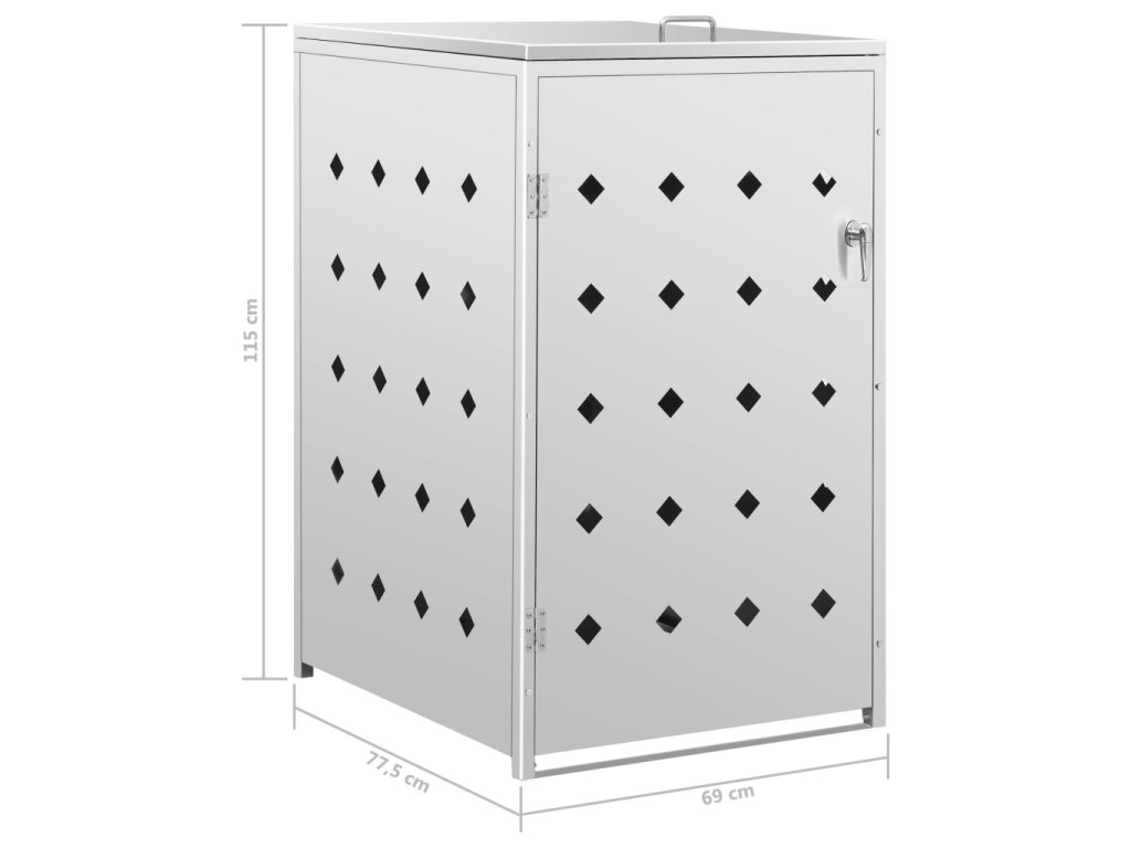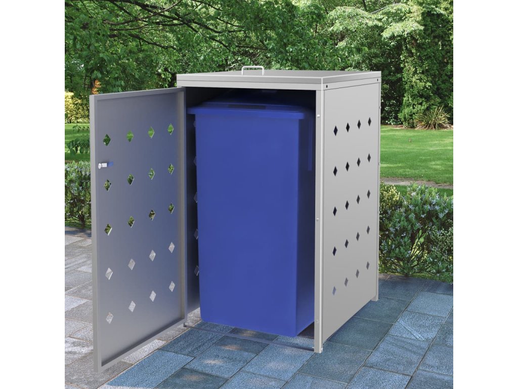 Přístřešek na popelnici z nerezové oceli je robustní a mimořádně odolný vůči povětrnostním podmínkám. Užitečné větrací otvory umožňují cirkulaci vzduchu, a zabraňují tak nepříjemným zápachům v boxu. Systém zamykání zajišťuje bezpečné skladování odpadu. Popelnici můžete snadno vyvážet praktickými dvířky.