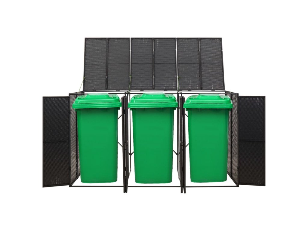 Přístřešek na tři popelnice černý 207 x 80 x 117 cm polyratan 319862