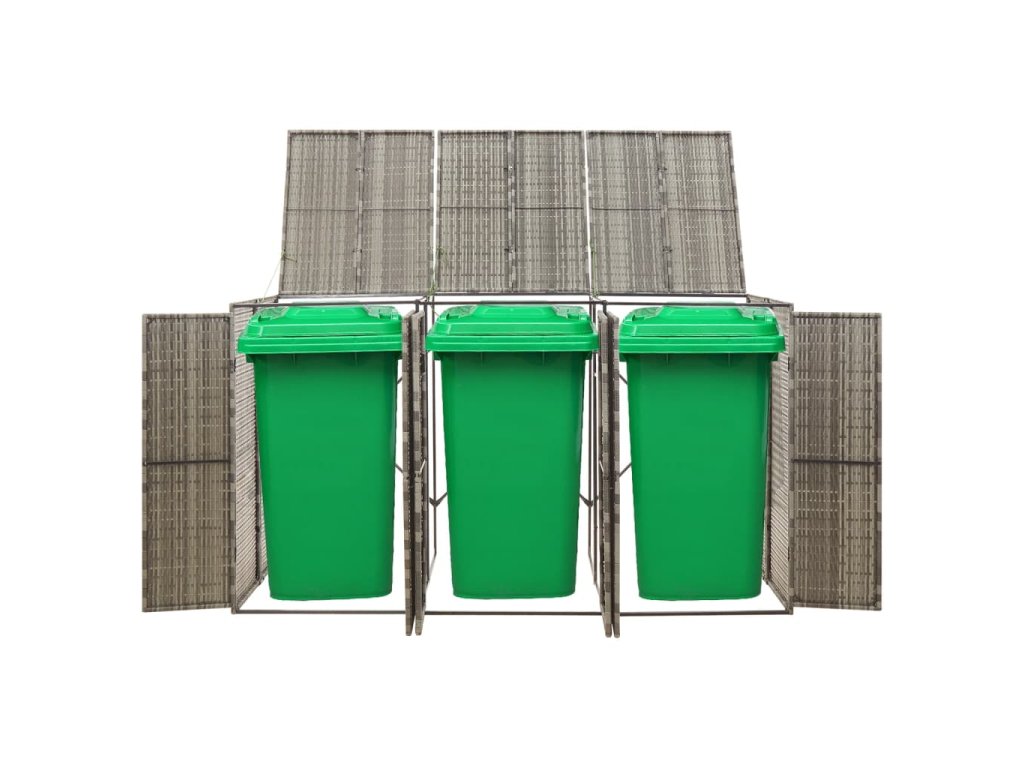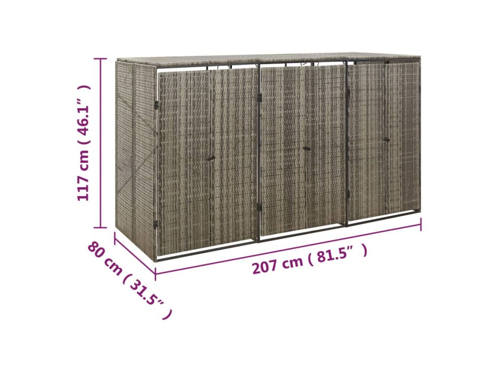 Přístřešek na tři popelnice šedý 207 x 80 x 117 cm polyratan 319866
