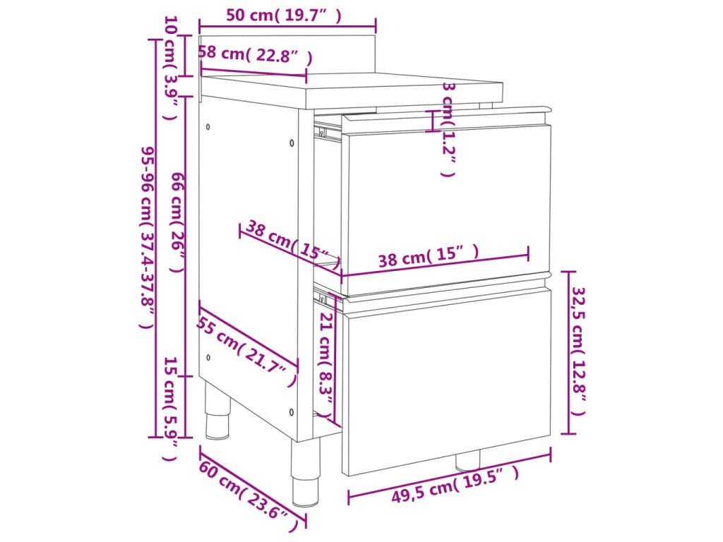 Profesionální kuchyňská linka se 2 zásuvkami 50x60x96 cm 151178