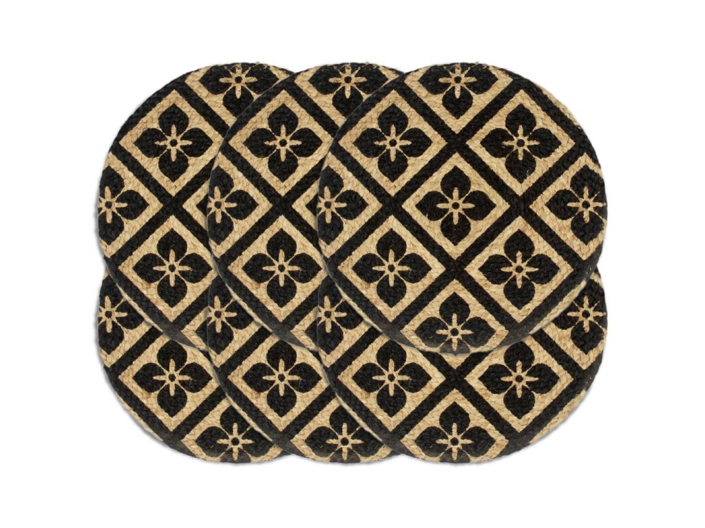 Prostírání 6 ks černé 38 cm kulaté juta 133869