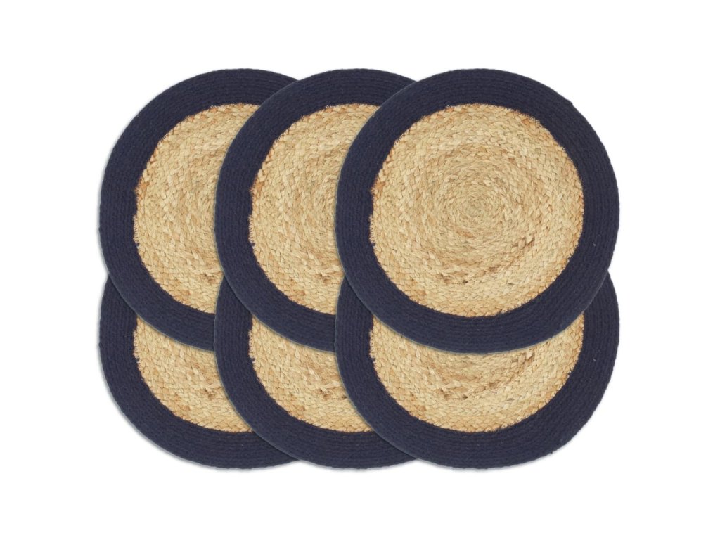 Prostírání 6 ks přírodní a námořnická modrá 38 cm juta a bavlna 133863