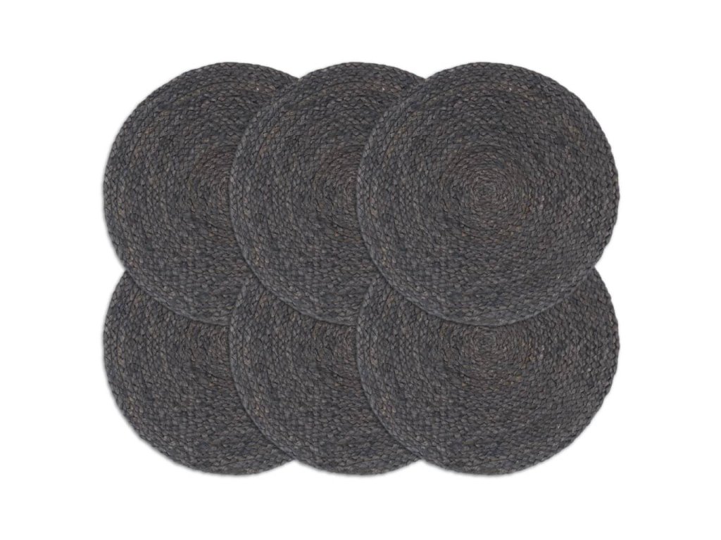 Prostírání 6 ks tmavě šedé 38 cm kulaté juta 133837