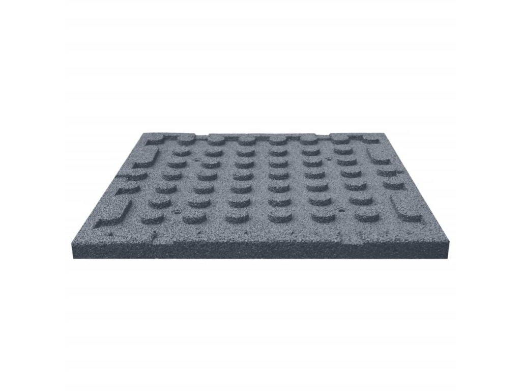 Podlahové dlaždice jsou vyrobeny z odolné a pružné pryže, která je pevná a protiskluzová. Při používání drží pevně na místě. Pryžové dlaždice jsou silné 3 cm a mají vysokou hustotu, takže poskytují ochranu za každého počasí. Navíc účinně absorbují nárazy, jsou proto ideálním typem povrchu pro dětská hřiště (jak vevnitř, tak venku), na zahradách a dalších místech pro venkovní aktivity.