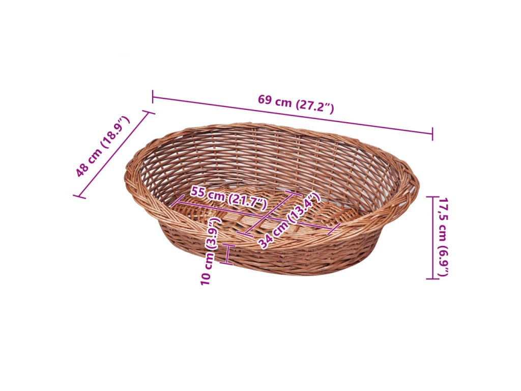 Tento koš por psy vyniká svým řemeslným zpracováním a skvělou konstrukcí. Je vyroben z vrbového proutí, je tedy bytelný, ale zároveň lehký, takže se dá snadno přenášet. Tento pelíšek pro zvířata můžete používat také venku, v zahradě nebo na terase, a to jak pro kočky a koťata, tak i pro psy a štěňata. Slouží ke spánku, odpočinku a hře. Jeho čištění i údržba jsou snadné.
