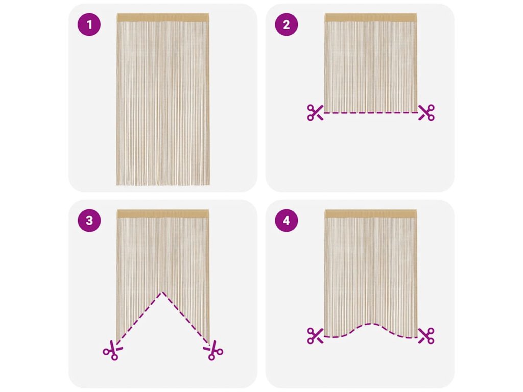 Naše praktické provázkové závěsy jsou skvělým dekorativním doplňkem do interiéru. Uplatnit je můžete jako závěs do dveří, do okna, jako předěl pokoje či jako pozadí do výlohy.