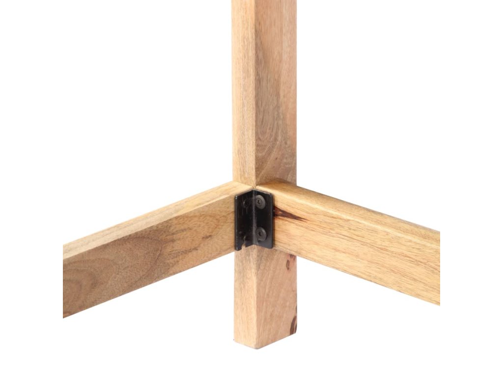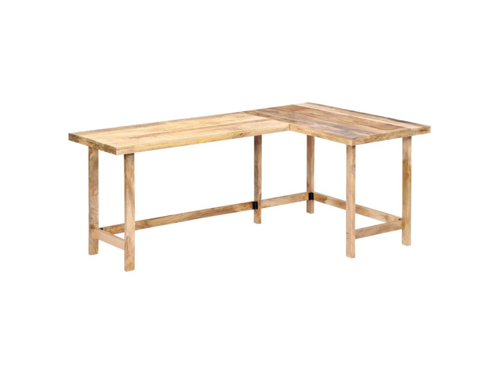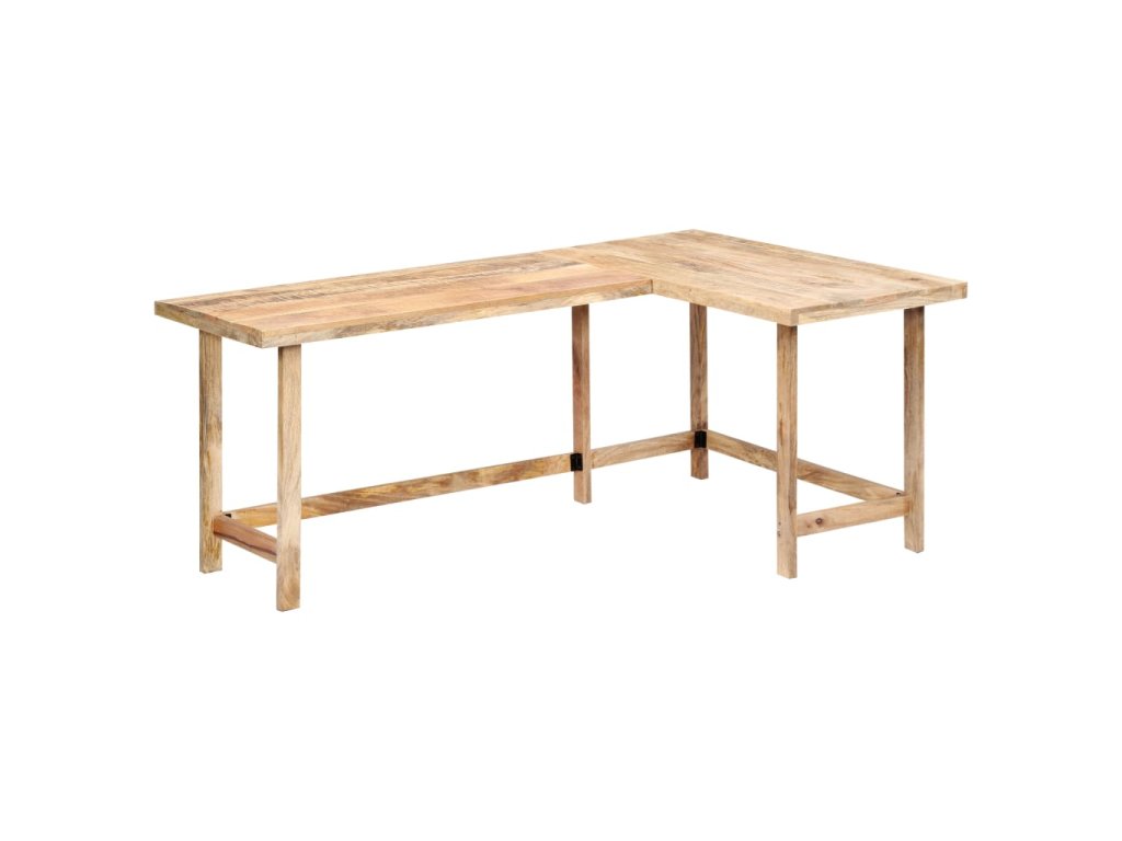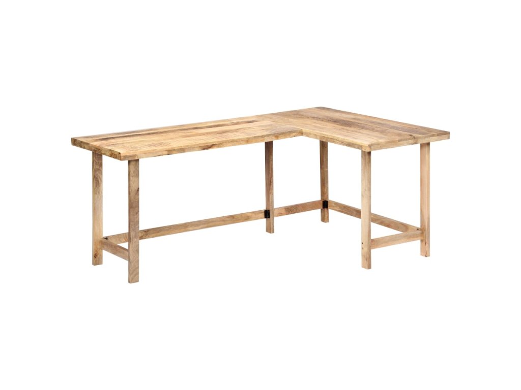 Psací stůl je vyroben z masivního mangovníku, což je tvrdé dřevo s hustou kresbou. Hrubé mangovníkové dřevo se pyšní nejen svou schopností unést vysokou zátěž, ale také obstojně odolává opotřebení a působení času. Mimořádná ruční práce spolu s elegantní kresbou dřeva činí každý kus nábytku zcela jedinečným a lehce odlišným od ostatních. Tento robustní stůl je navíc zajímavý svým designem ve tvaru písmene L a lze jej umístit na levou i na pravou stranu.