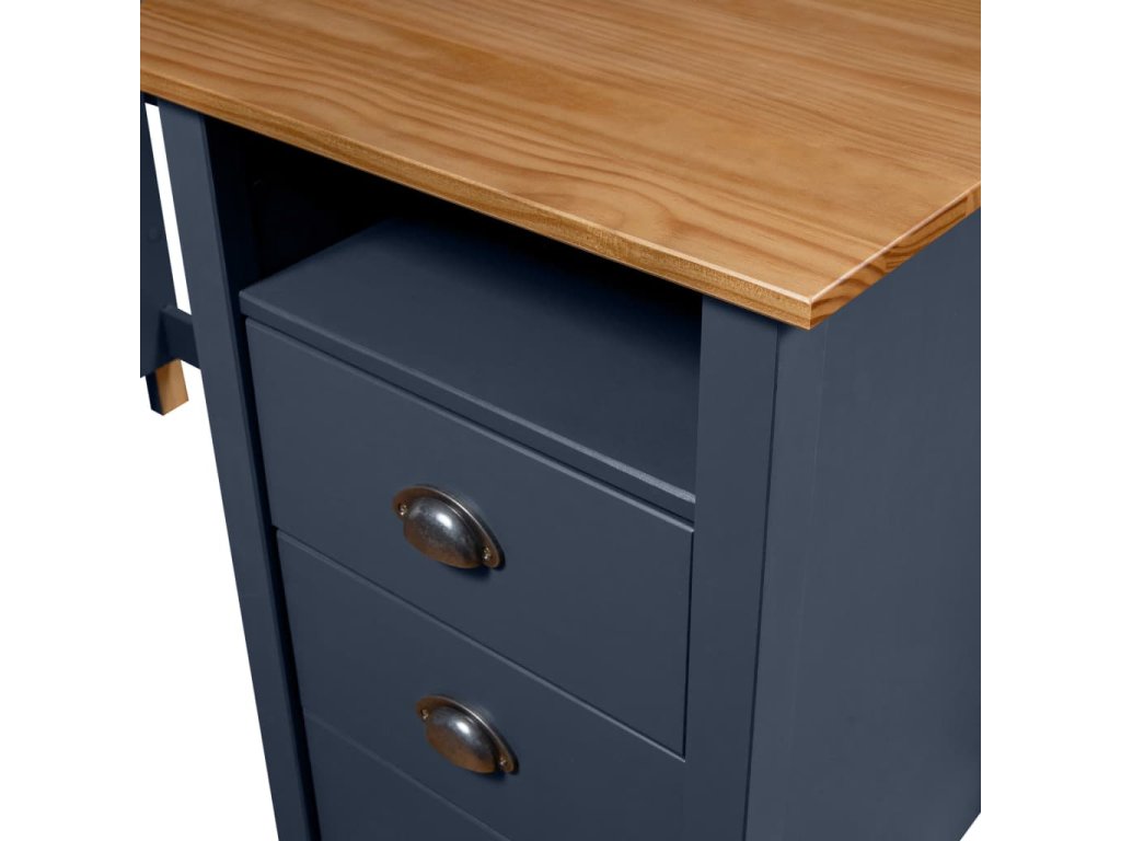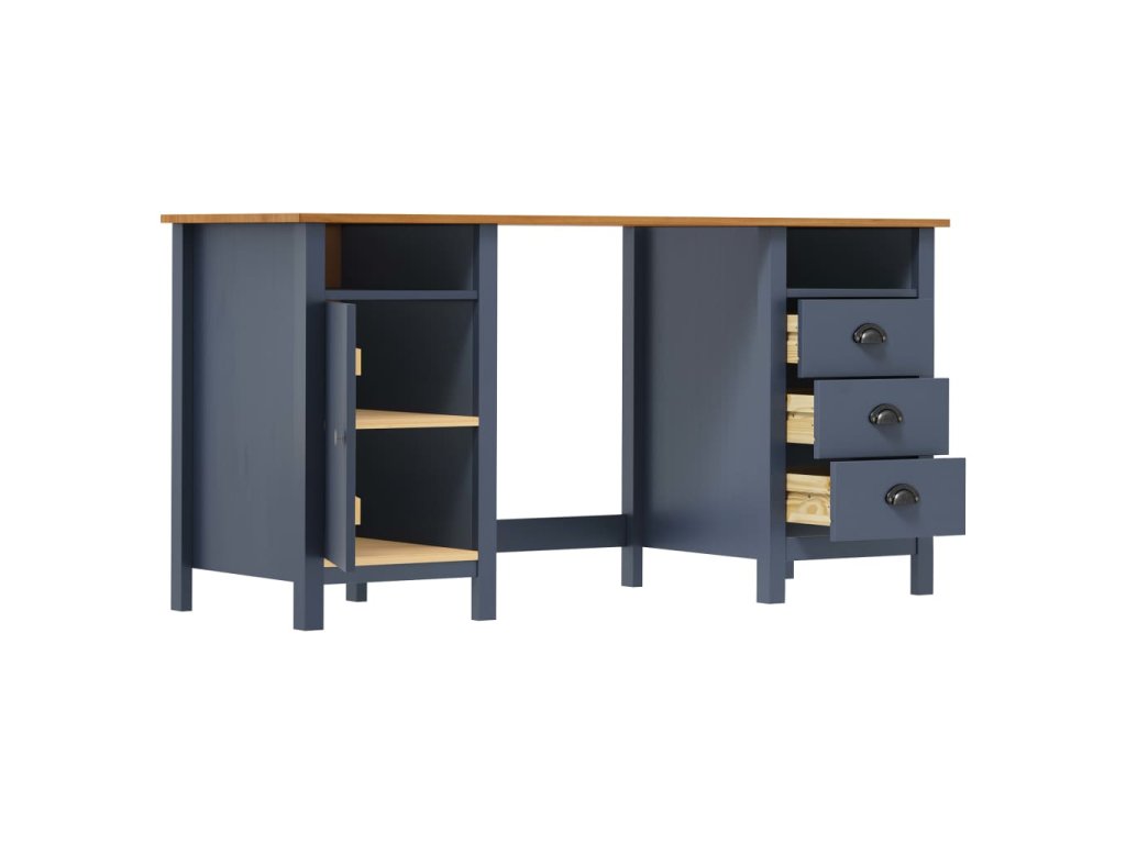 Psací stůl je zhotoven z masivního borového dřeva, je tedy stabilní a bytelný. Studijní stůl je vybaven 3 zásuvkami s úchytkami ve tvaru mušle, 2 přihrádkami a 1 dvířky. Poskytuje také dostatek úložného prostoru, takže si můžete vystavit nebo přehledně uložit jakékoli předměty.