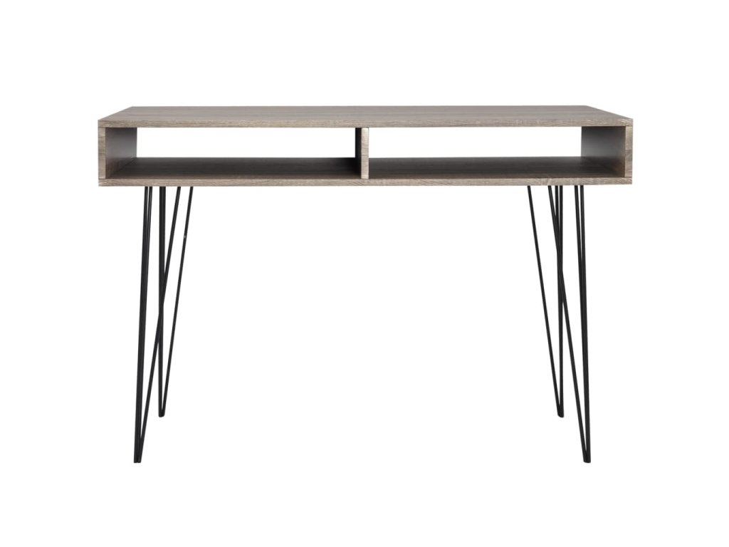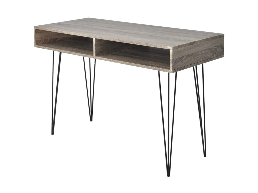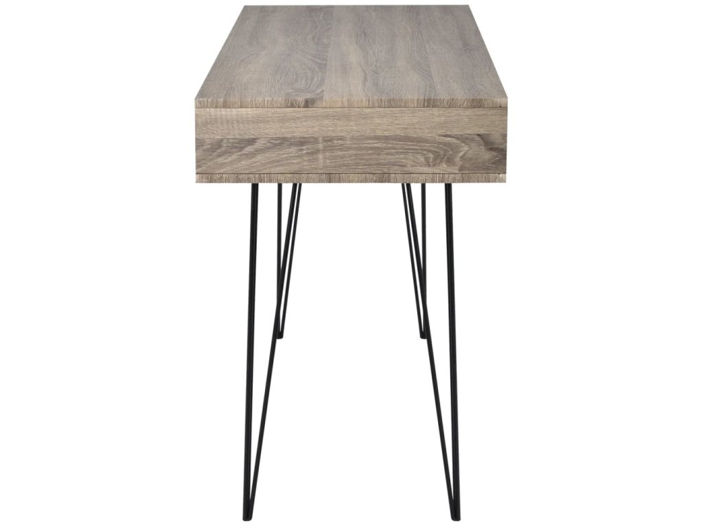 Díky vysoce kvalitnímu MDF povrchu a pevným kovovým nohám je tento stůl velmi odolný, stabilní a robustní. Prostorná stolní deska poskytuje velký prostor pro uložení počítače, notebooku, stolní lampy apod. Jeho dvě přihrádky jsou ideální pro uchování všech druhů menších předmětů, jako jsou klíče, poznámkové bloky, pera a další drobností tak, aby byly uspořádané, a zároveň po ruce.