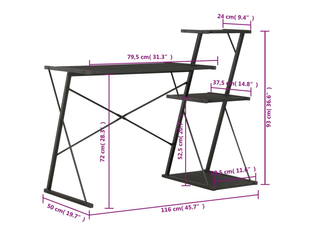 Psací stůl s poličkou černý 116 x 50 x 93 cm 20288