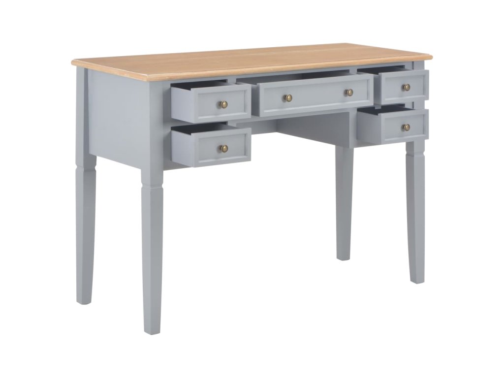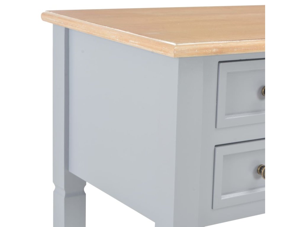 Tento bytelný psací stůl je vyrobený z vysoce kvalitní MDF a borového dřeva s šedým nátěrem.