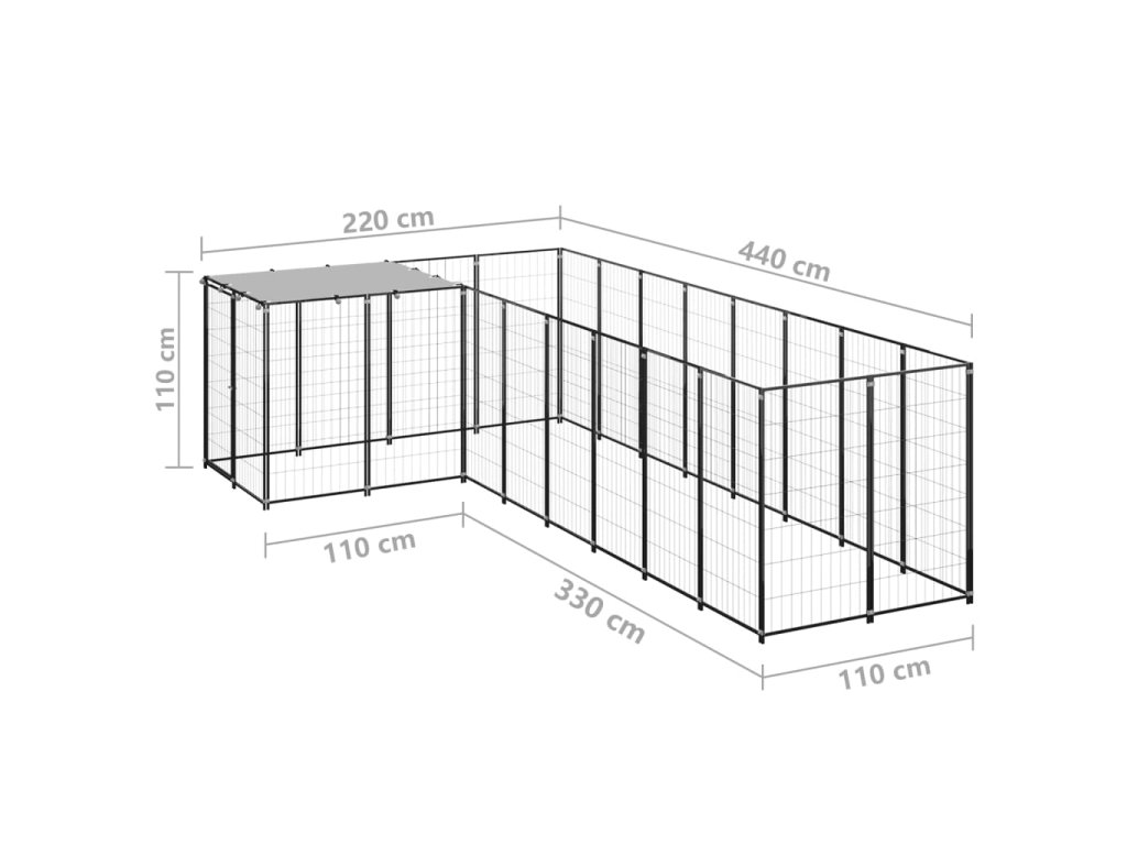 Psí kotec černý 6,05 m² ocel 3082225