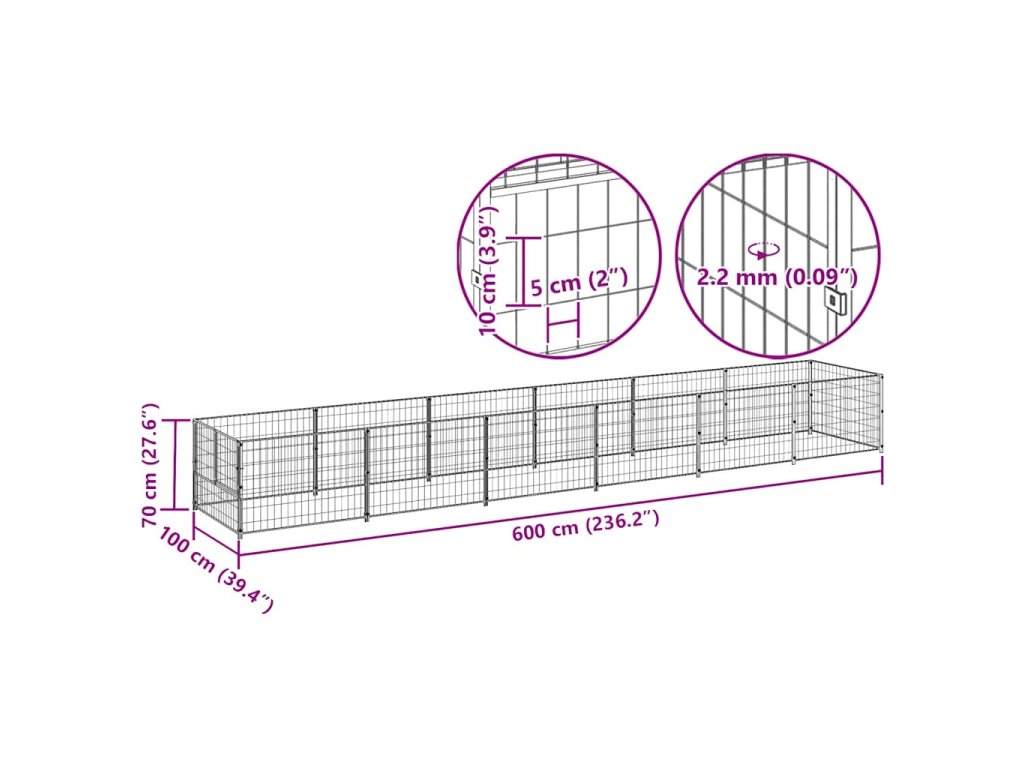 Psí kotec černý 6 m² ocel 3082096