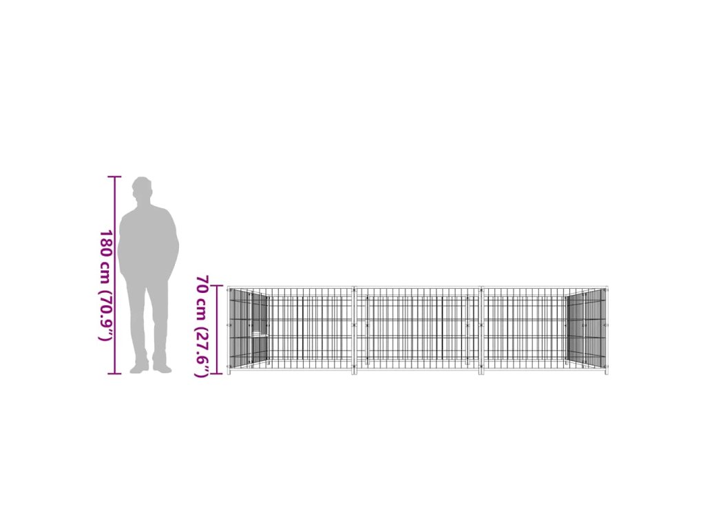 Velká klec pro psy poskytuje spoustu prostoru pro pohyb psa. Stěny z ocelového pletiva pomáhají předcházet nečekaným nehodám a zároveň umožňují volné proudění vzduchu. Výběh má robustní ocelovou konstrukci, je proto odolný a má dlouhou životnost. Dveře jsou navíc opatřeny uzamykatelnou západkou, která zajišťuje větší bezpečnost a ochranu vašich psů.
