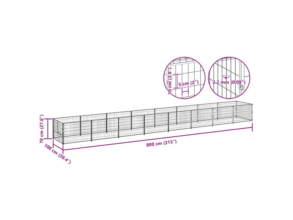 Psí kotec černý 8 m² ocel 3082098