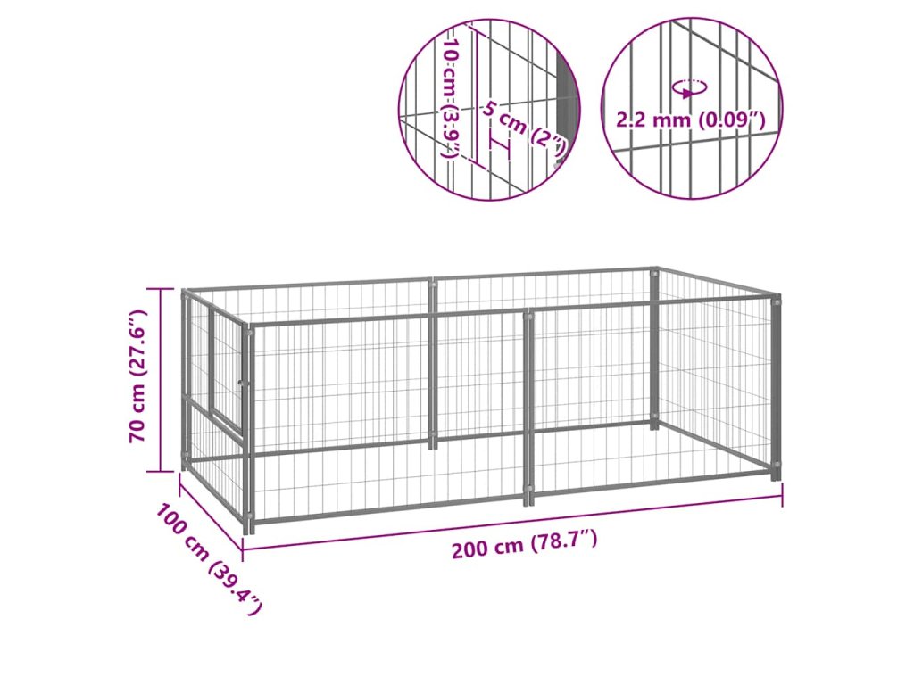 Psí kotec stříbrný 200 x 100 x 70 cm ocel 150793