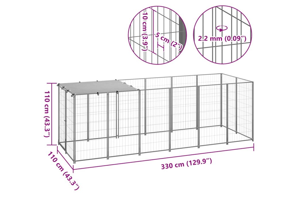 Psí kotec stříbrný 330 x 110 x 110 cm ocel 150786