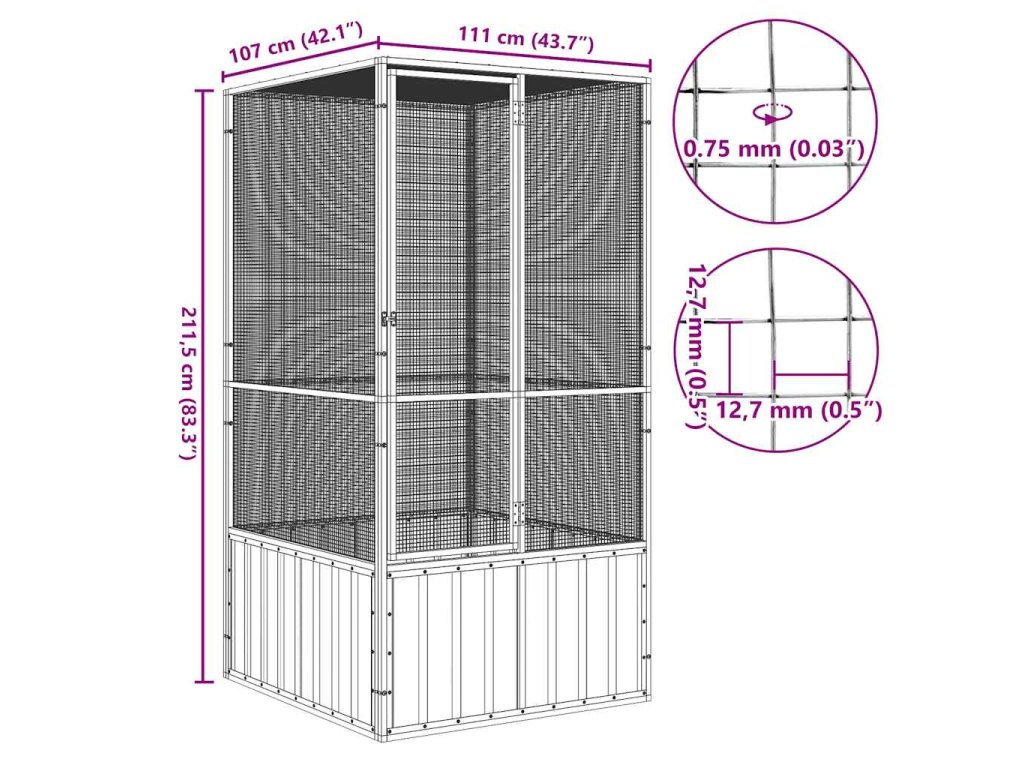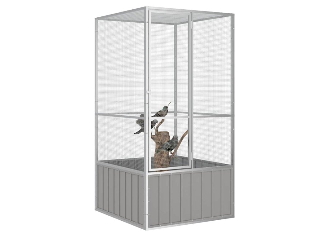 Ptačí klec šedá 111 x 107 x 211,5 cm pozinkovaná ocel 171551