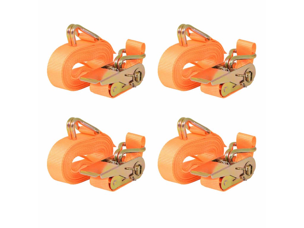Ráčnové upínací pásy, 4 ks, 0,4 tun, 6mx25mm, oranžové 142658