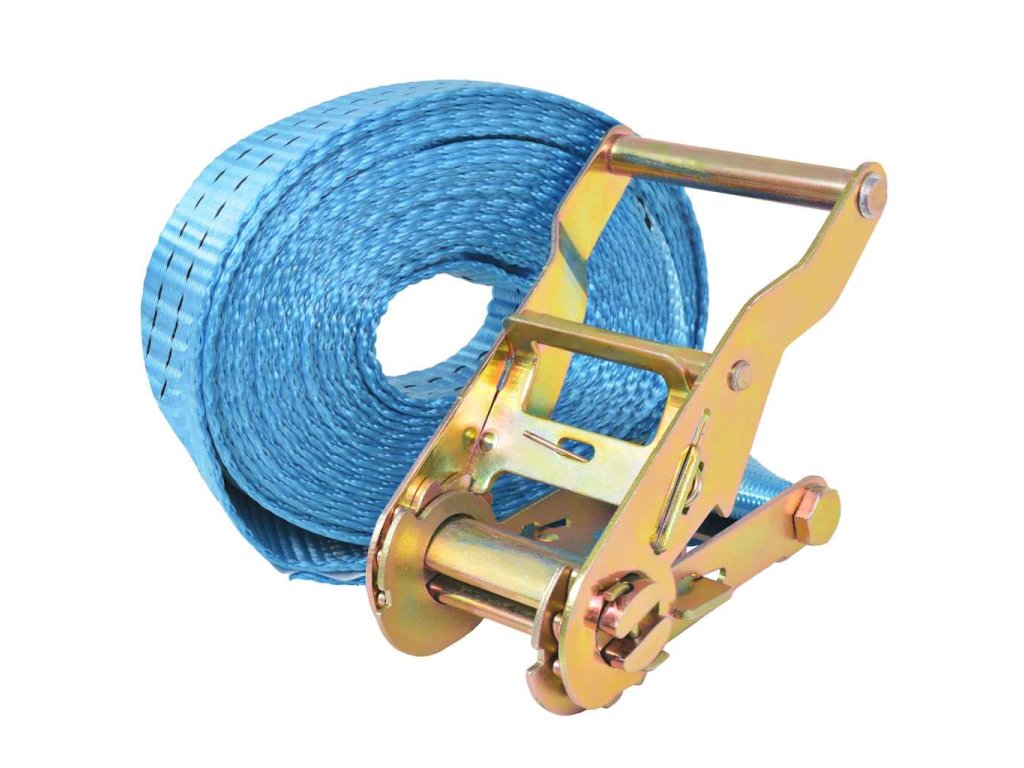 Odolné a pevné upínací popruhy jsou vyrobené z vysoce kvalitního polyesteru a kapacita nakládky každého z nich je 2 tuny. Upínací popruhy byly vyrobeny v souladu s Evropskou normou EN-12195-2. Jsou také vybavené ráčnami s rychloupínacími západkami pro maximální utažení nákladu při transportu. Ovládání ráčen je velmi jednoduché.