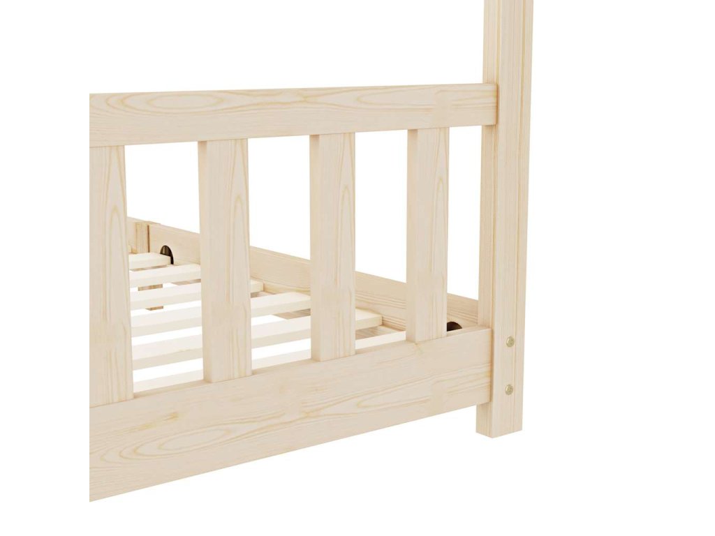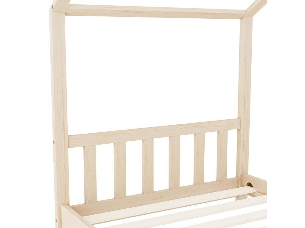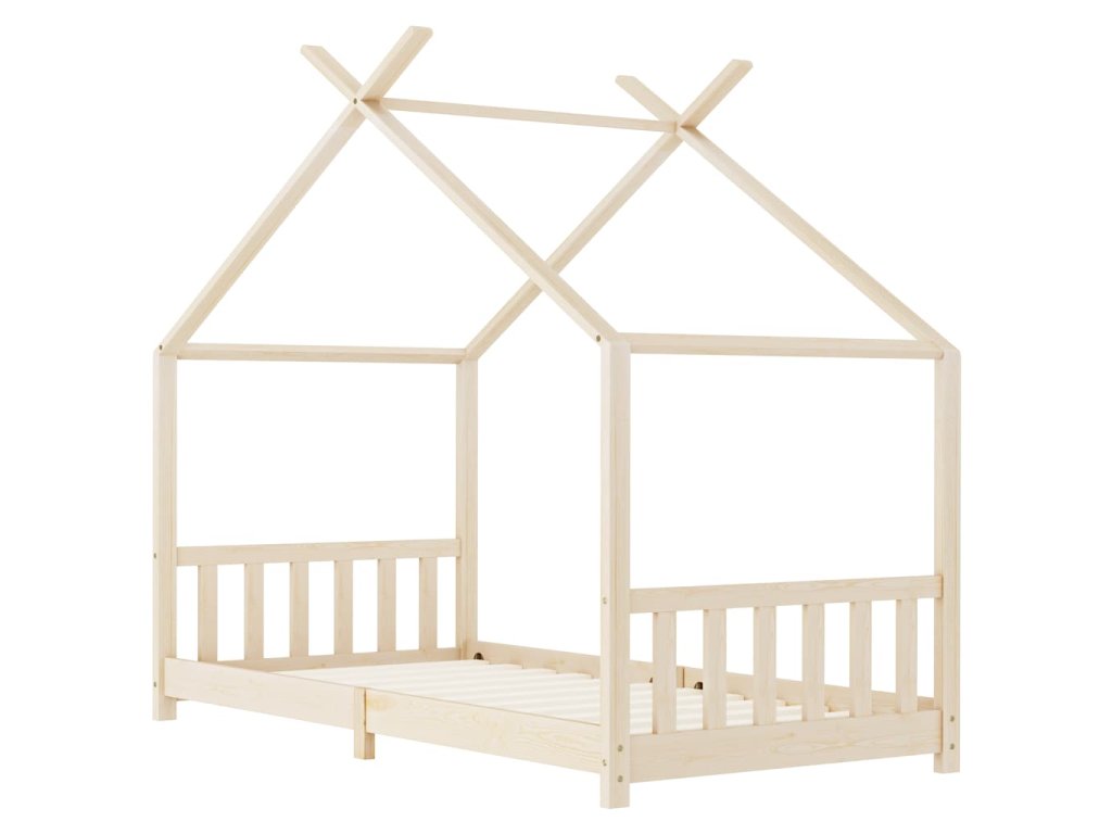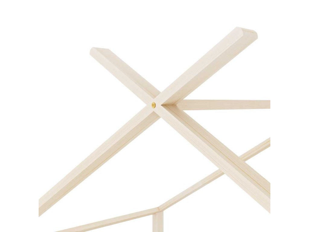 Postel je chytře vyvedena ve stylu domku na stromě. Chcete-li svému dítěti dopřát trochu soukromí, můžete mu na rám pověsit závěsy. Domeček mu kromě toho skvěle poslouží i jako čtecí nebo hrací koutek. Rám postele je vyrobený z masivního borového dřeva, je tudíž mimořádně odolný a má dlouhou životnost. Pevné lamely nabízejí potřebnou oporu a zároveň jsou velmi pohodlné. Tento rám postele je vhodný pro matraci o rozměrech 90 x 200 cm.