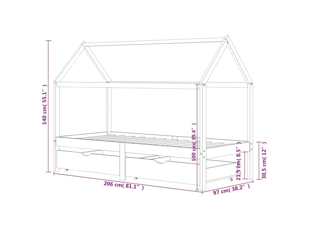 Rám dětské postele se zásuvkami masivní borovice 90 x 200 cm 322138