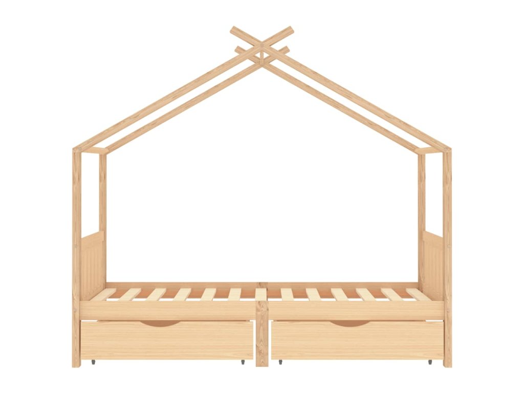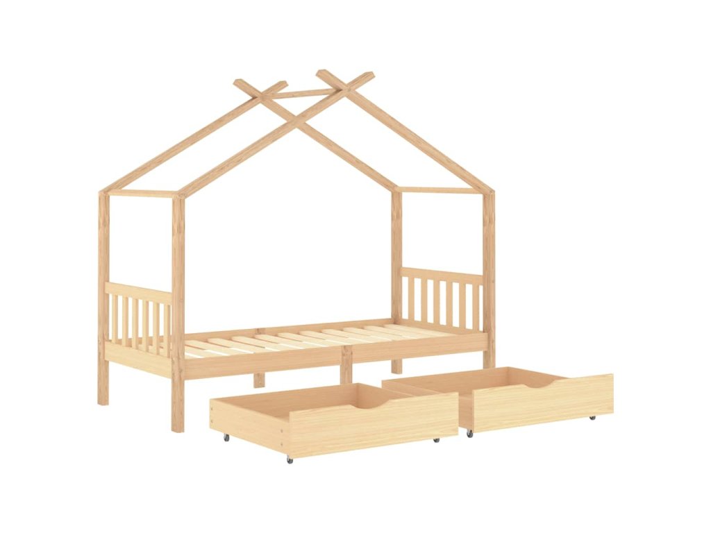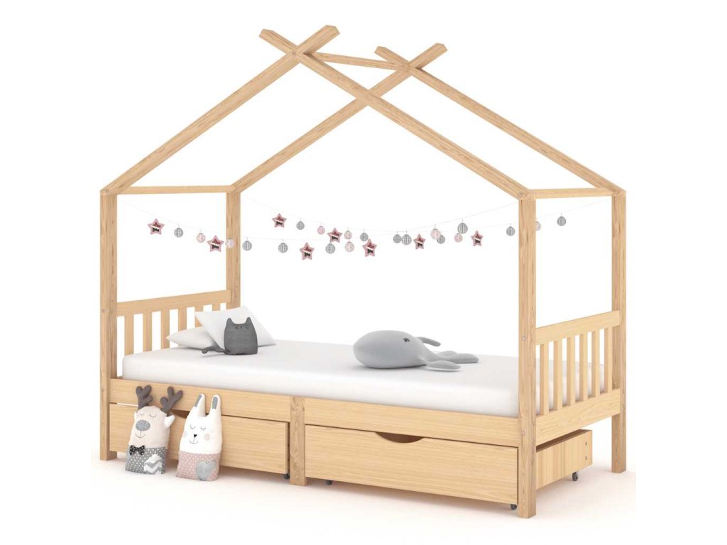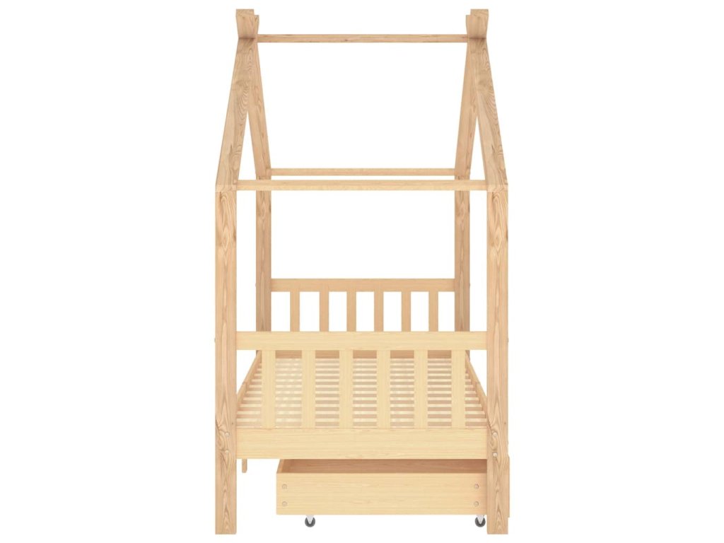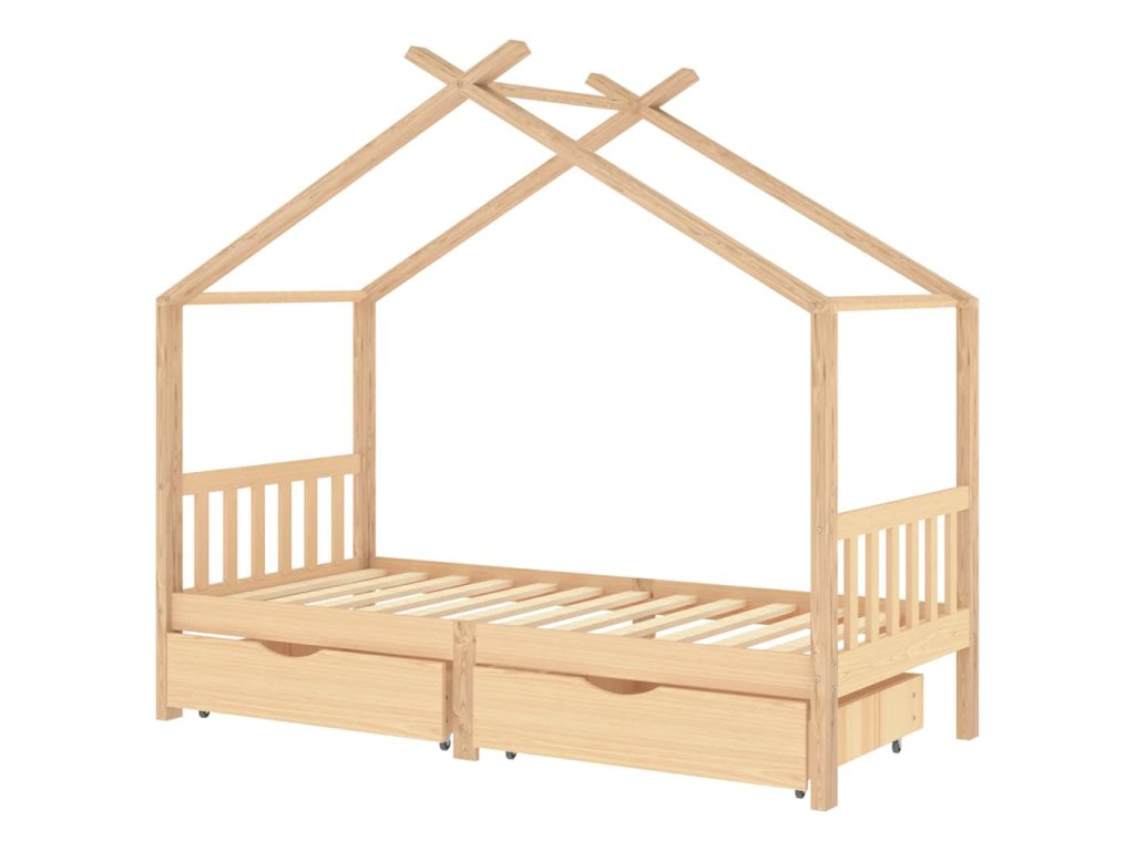 Postel je chytře navržena s rámem ve stylu domečku na stromě, kam můžete pověsit závěsy a vytvořit tak pro vaše dítě soukromí. Může sloužit i jako místo na čtení či na hraní. Rám postele je vyrobený z masivního borového dřeva, je tedy mimořádně pevný a má dlouhou životnost. Pevné lamely poskytují potřebnou oporu a jsou velmi pohodlné. Zásuvka pod postelí se 2 úchyty poskytuje dostatek úložného prostoru pro uložení složeného oblečení, hraček atd., a pokoj tak bude čistý a uklizený. Kolečka fungují jak na koberci, tak na dřevěné podlaze. Tento rám postele je vhodný pro matrace o rozměrech 70 x 140 cm.