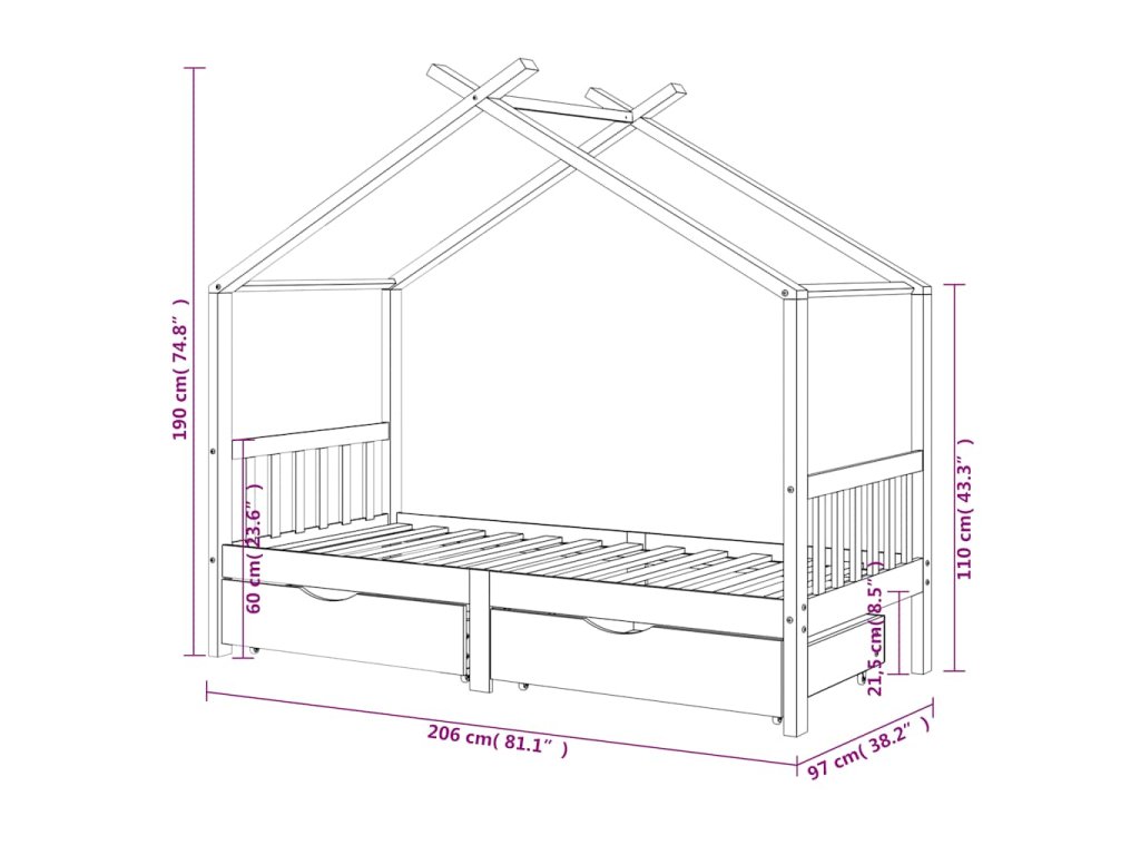 Rám dětské postele se zásuvkou tmavě šedý borovice 70 x 140 cm 322151
