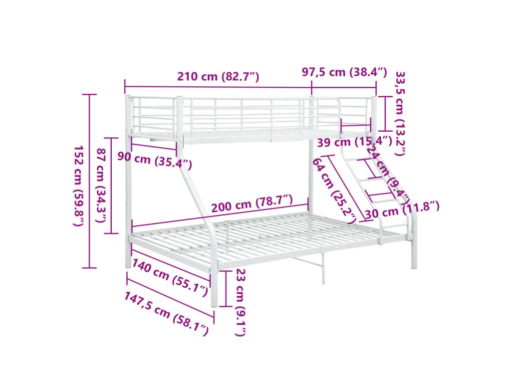 Rám poschoďové postele bílý kov 140 x 200 / 90 x 200 cm 287903