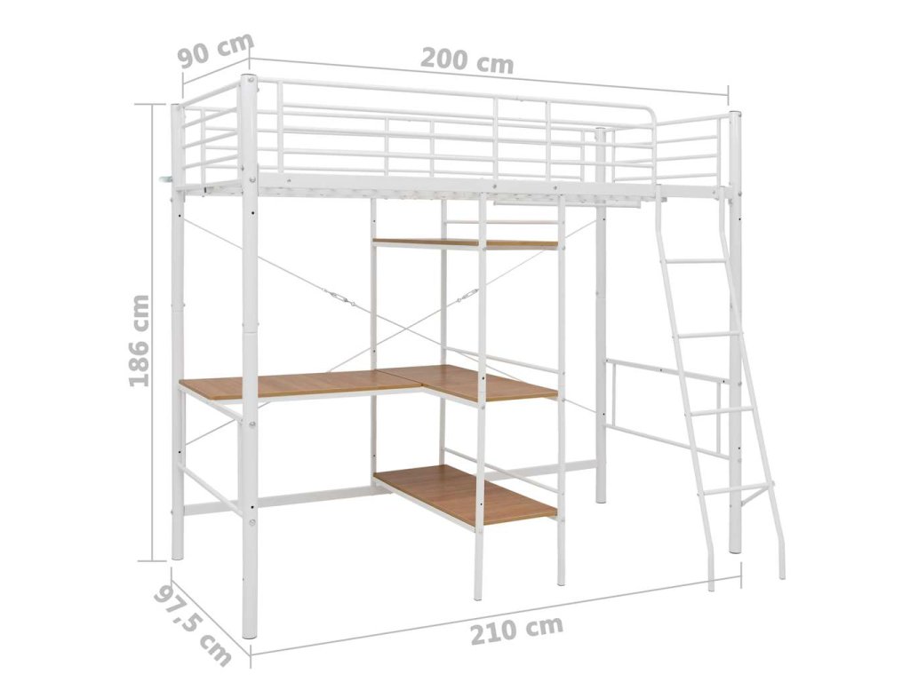 Rám poschoďové postele se stolem bílý kov 90 x 200 cm 287906