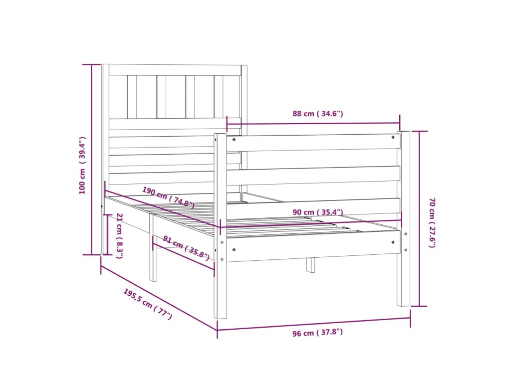 - Tento rám postele je vhodný pro matrace o rozměrech 90 x 190 cm (3FT Single).