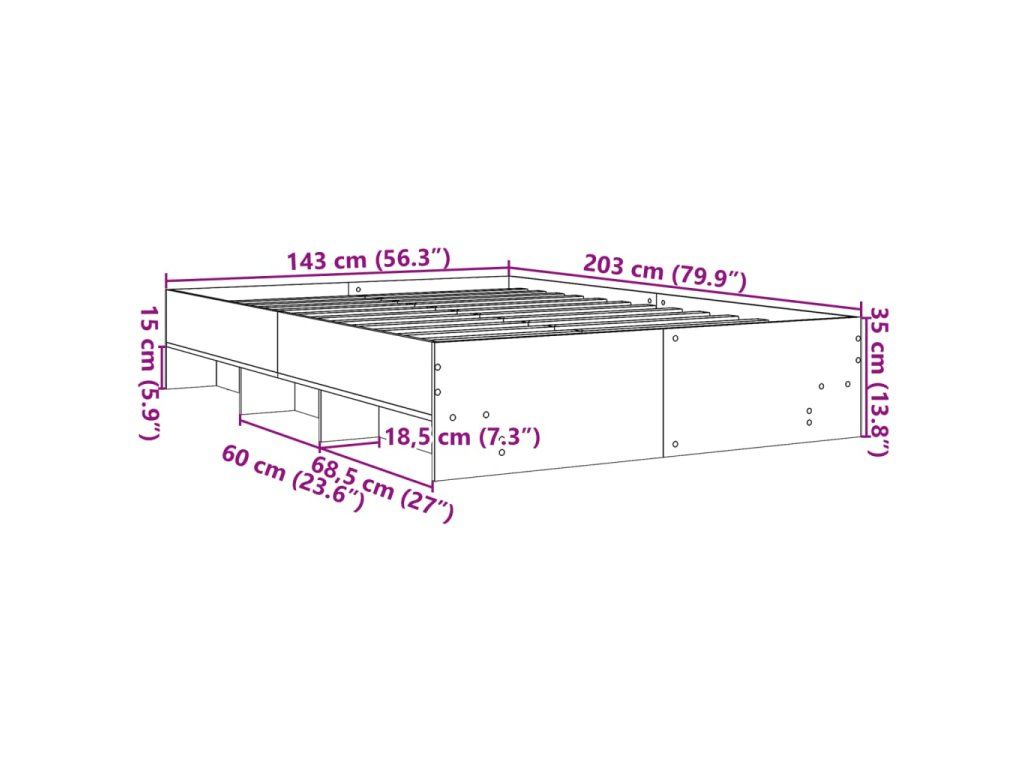 Rám postele bez matrace hnědý dub 140 x 200 cm kompozitní dřevo 3295659