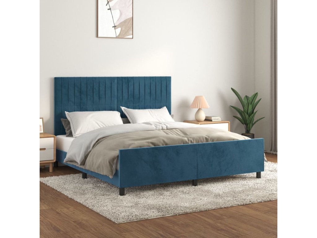 Rám postele bez matrace tmavě modrý 160x200 cm samet 3125889