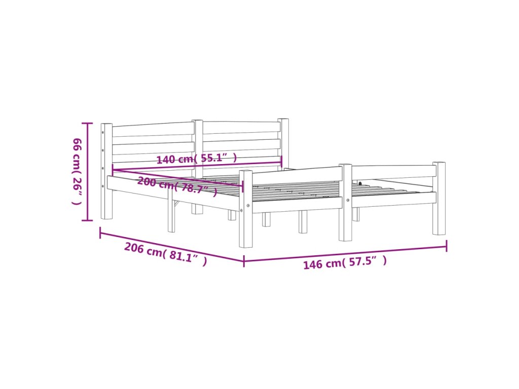 Rám postele bez matrace z masivního borovicového dřeva 322064