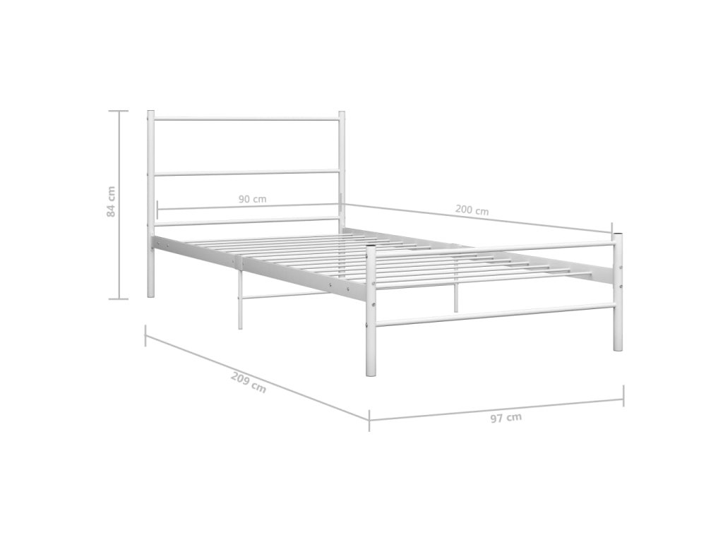 Postel je vyrobena z vysoce kvalitního kovu a je odolná a robustní. Práškově lakovaný rám je odolný proti poškrábání a nárazu. Kovové lamely jsou mírně pružné a tvoří pohodlnou základnu postele. Jednolůžková postel je vhodná pro matrace o rozměrech 200 x 90 cm.