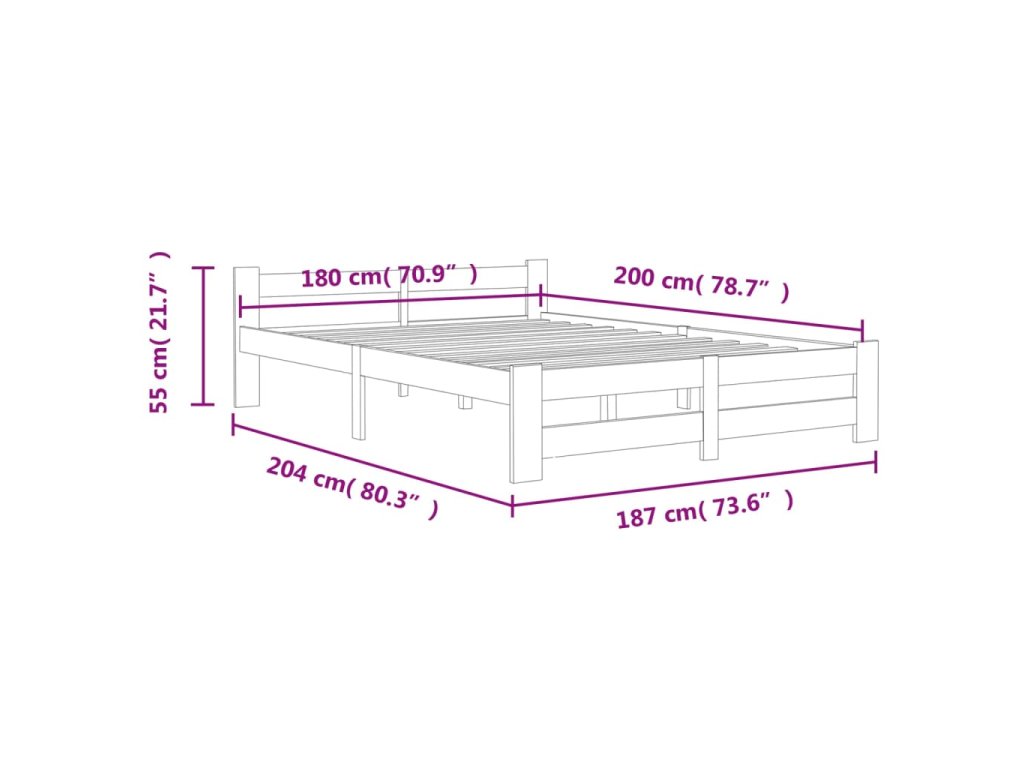 Rám postele je vyrobený z masivního borového dřeva, je tedy mimořádně pevný a má dlouhou životnost. Pevné překližkové lamely nabízejí potřebnou podporu a pohodlí. Je vhodný pro matraci o rozměrech 180 x 200 cm.