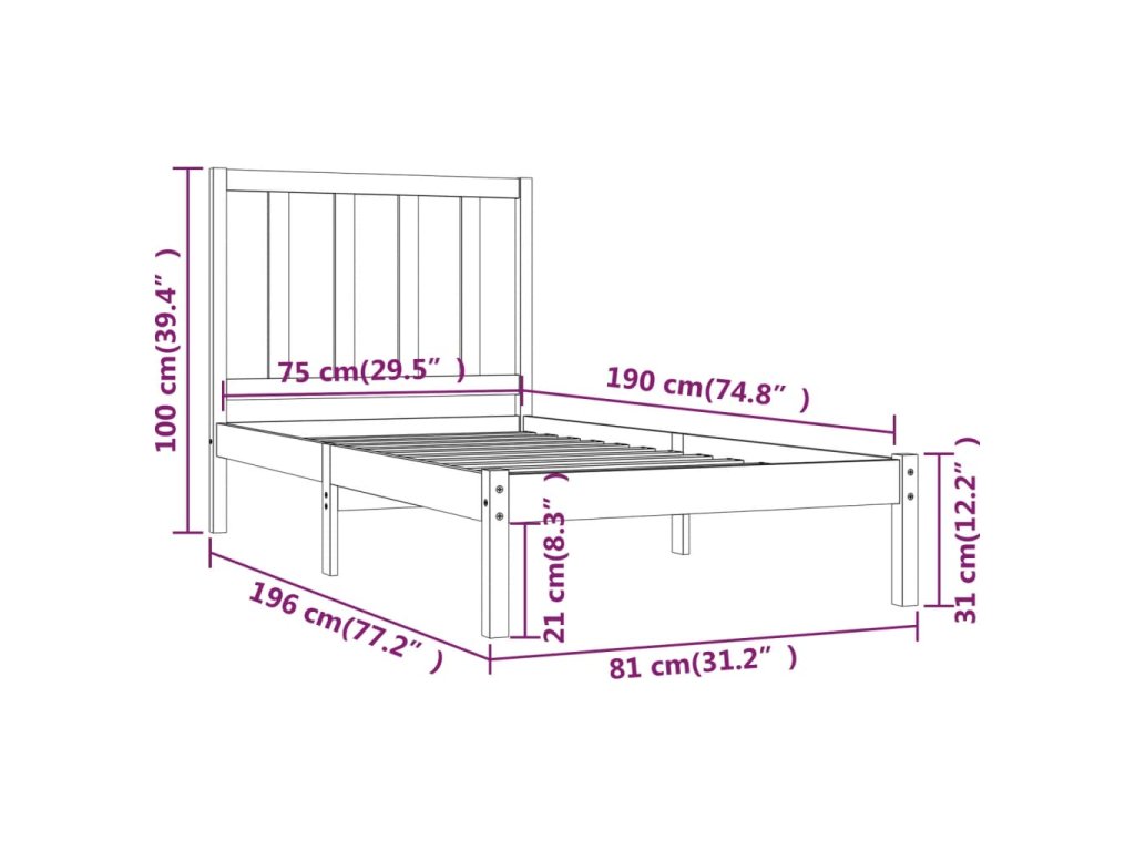 - Tento dřevěný rám postele je vhodný pro matrace o rozměrech 75 x 190 cm (Small Single)