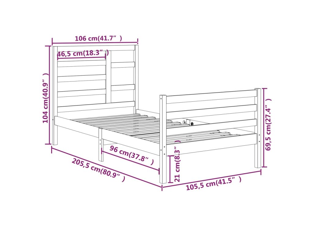 - Rozměry čela postele: 106 x 4 x 104 cm (Š x H x V)