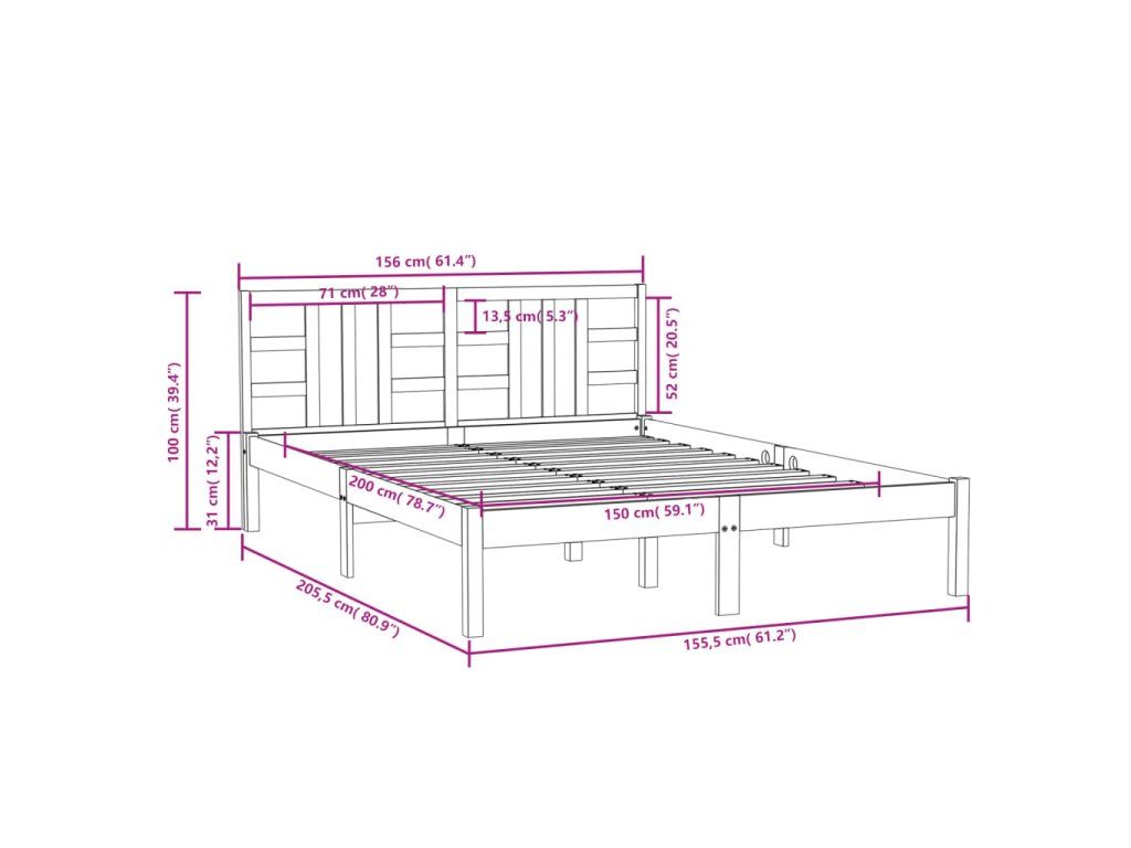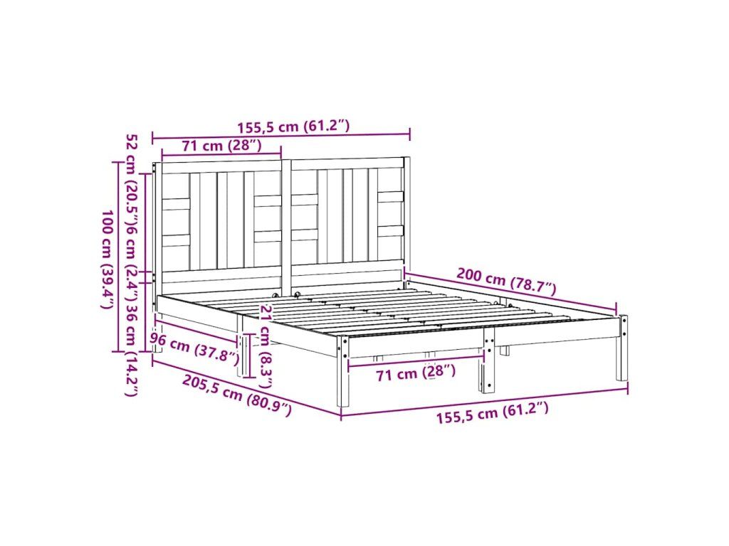 - Rozměry rámu postele: 205,5 x 155,5 x 31 cm (D x Š x V)