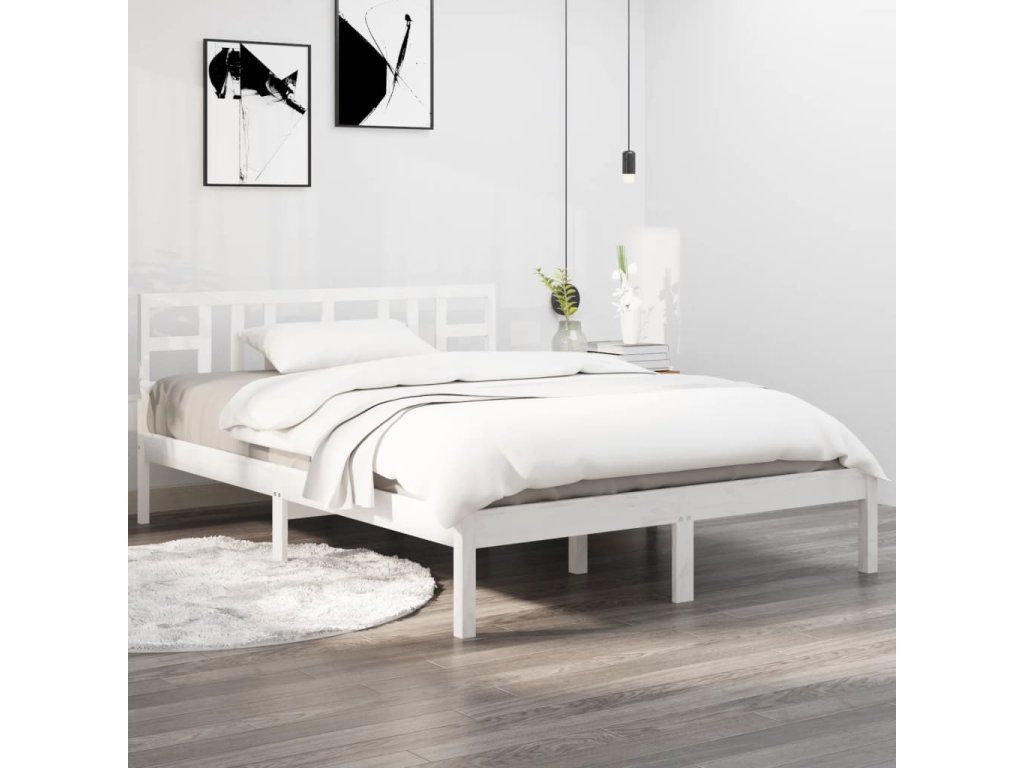 Rám postele bílý masivní dřevo 150 x 200 cm King Size 3105411