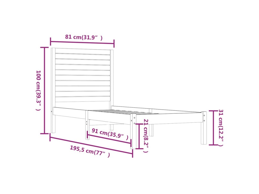 - Celkové rozměry rámu postele: 195,5 x 81 x 100 cm (D x Š x V)