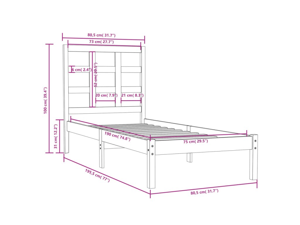 - Rozměry rámu postele: 195,5 x 80,5 x 31 cm (D x Š x V)
