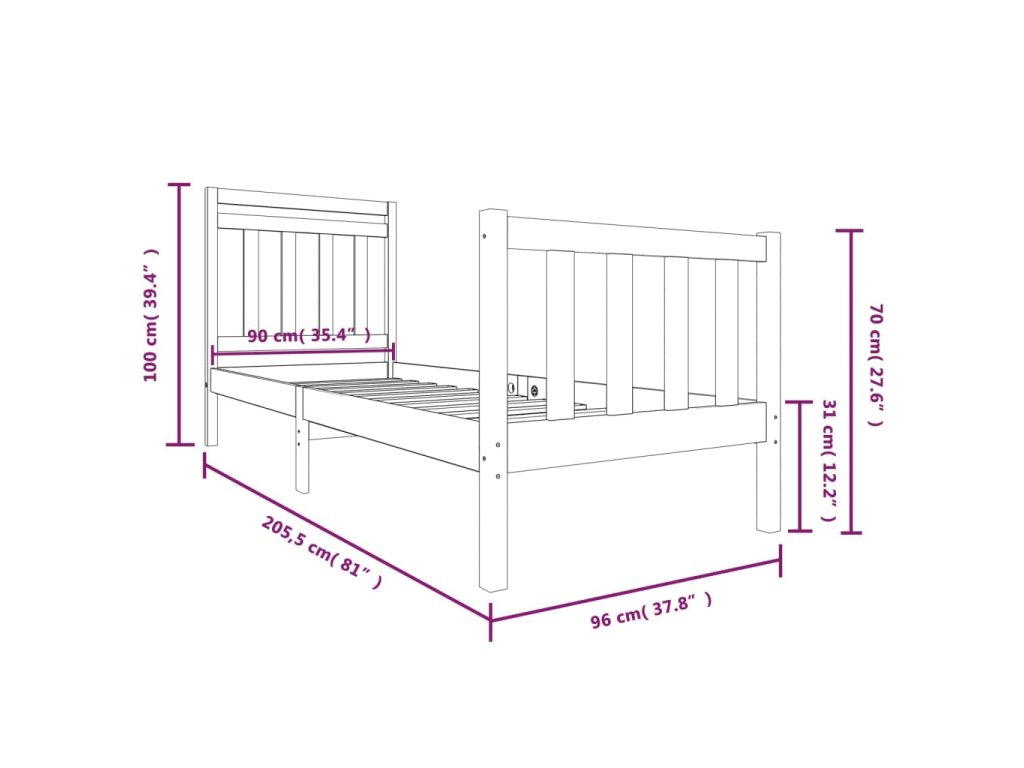 Rám postele bílý masivní dřevo 90 x 200 cm 3100705