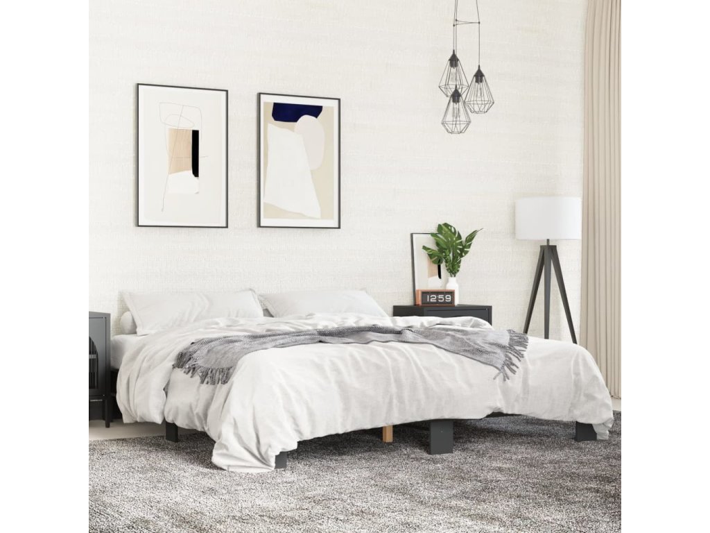Rám postele černý 200 x 200 cm kompozitní dřevo a kov 3280217