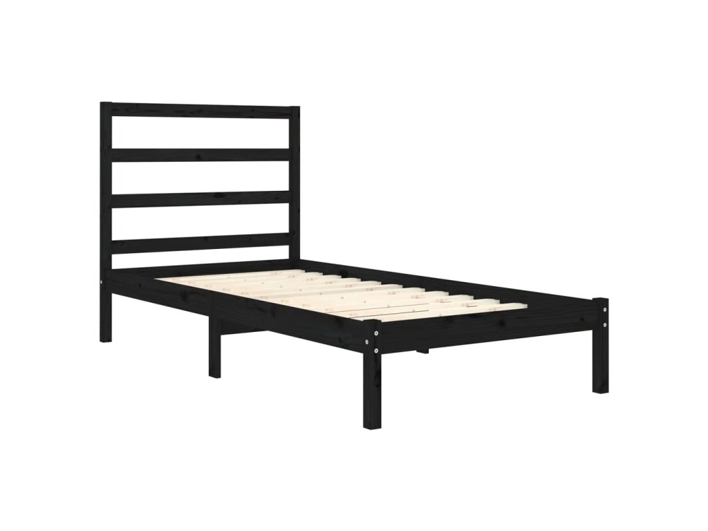Rám postele černý masivní dřevo 75 x 190 cm malé jednolůžko 3104897