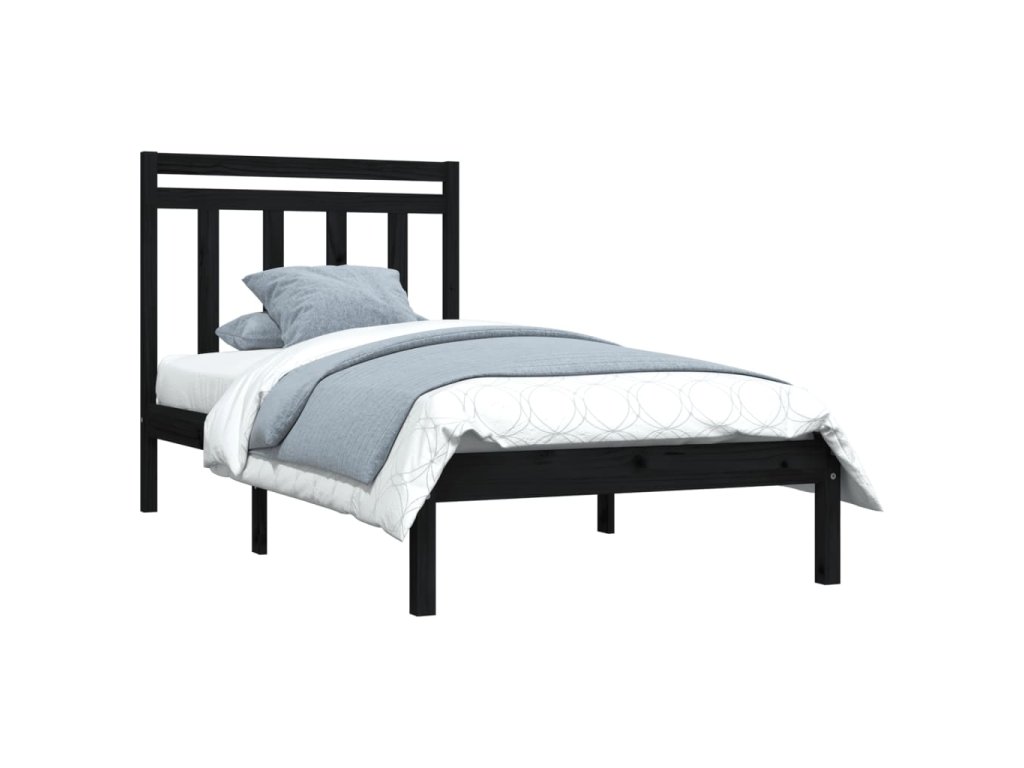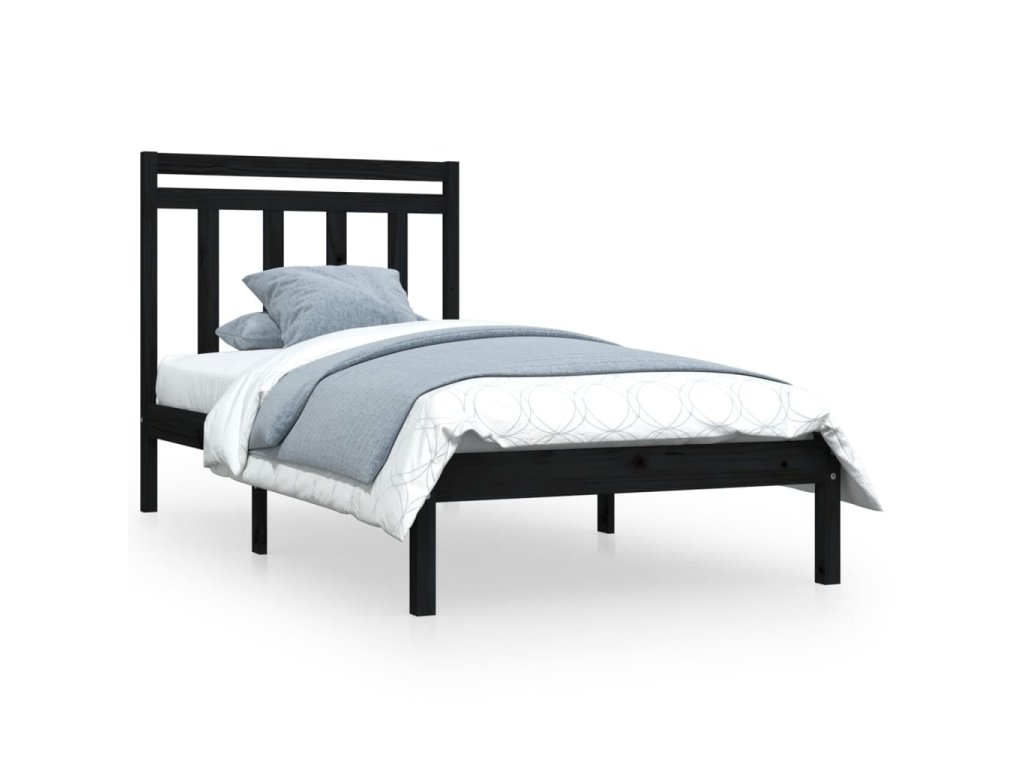 Rám postele černý masivní dřevo 75 x 190 cm malé jednolůžko 3105214