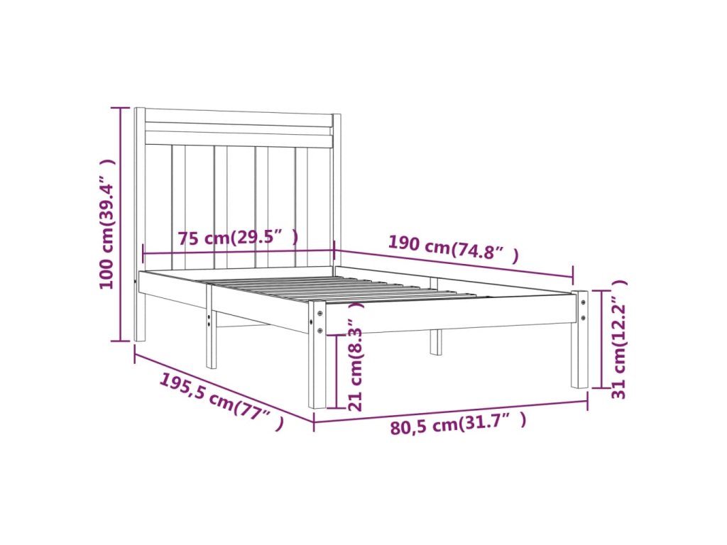 - Tento rám postele je vhodný pro matrace o rozměrech 75 x 190 cm (2FT6 Small Single)